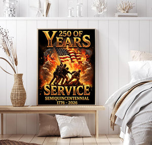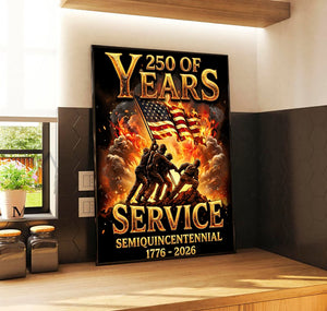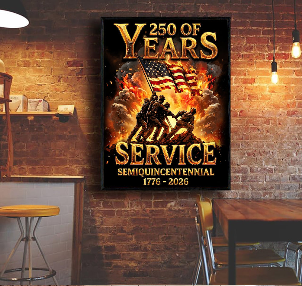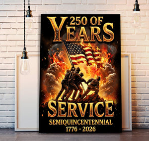 250 Years of Service Wall Art Canvas, USA 1776–2026 Patriotic Poster, Semiquincentennial American Military Decor