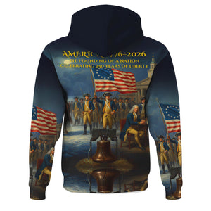 America 1776–2026 Hoodie 250th Anniversary Founding Of A Nation Patriotic USA T Shirt Gift For Dad Men Husband
