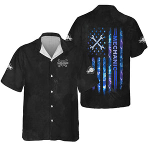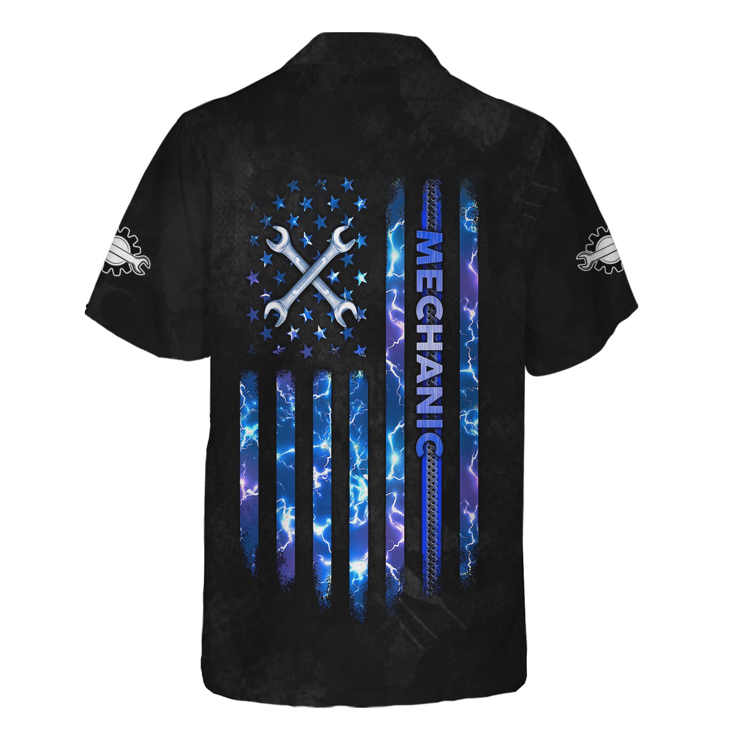 The print is awesome and the shirt fits just right. Perfect for any mechanic who loves bold style.