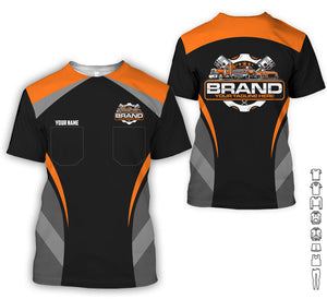 Best Custom Mechanic Shirt for Men, Printed Pocket Shirt, Perfect Gift for Car Guys, Diesel Techs, and Shop Crews, Unisex Orange Mechanic Shirt