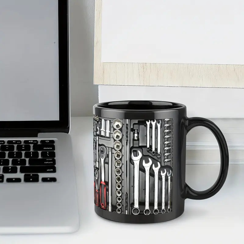 Ceramic Mechanic Mug, Socket & Spanner Print, Ideal Mechanic Gift for Men on Father’s Day or Birthday