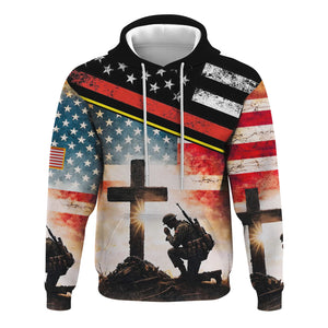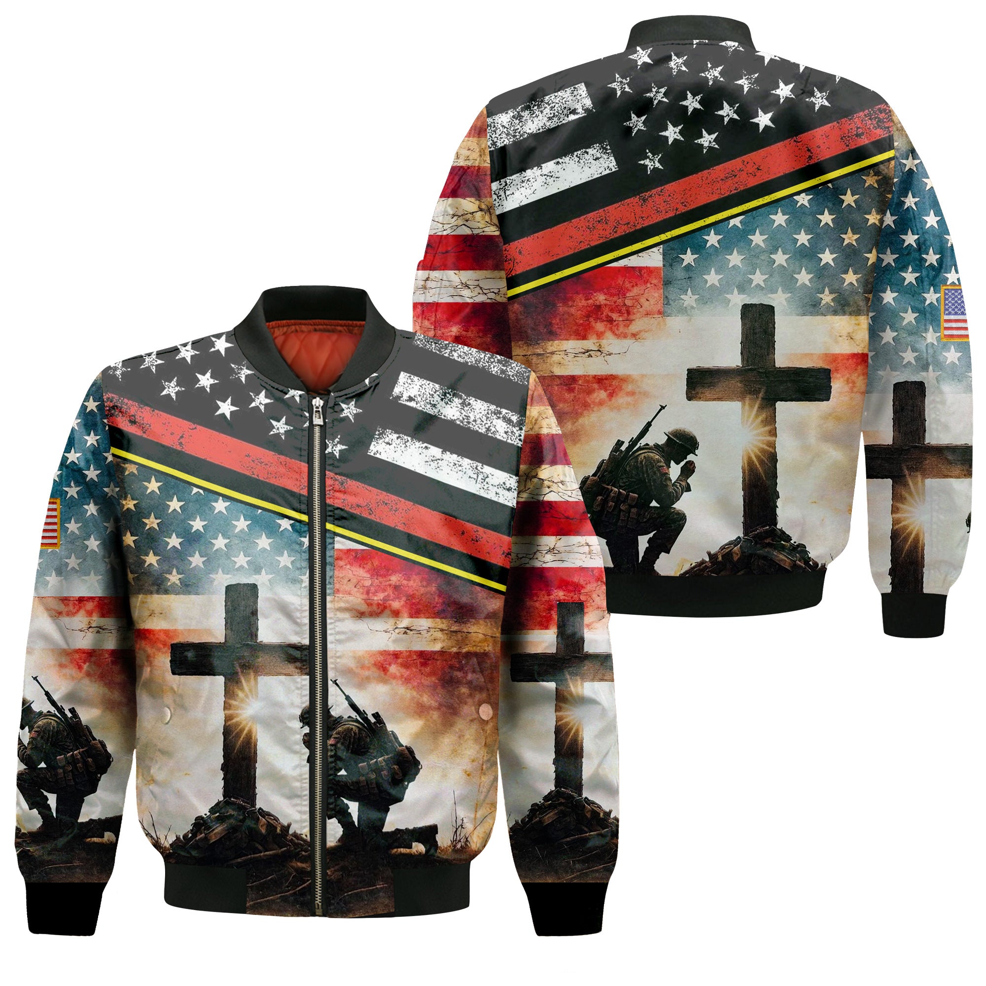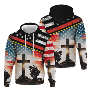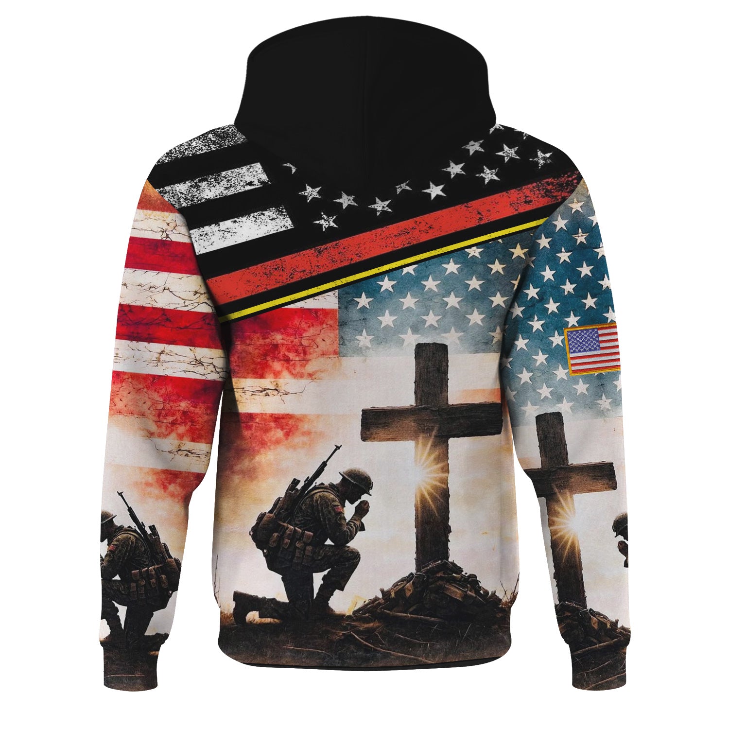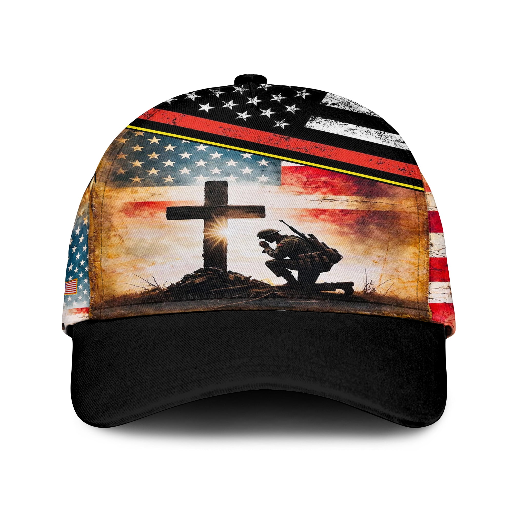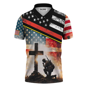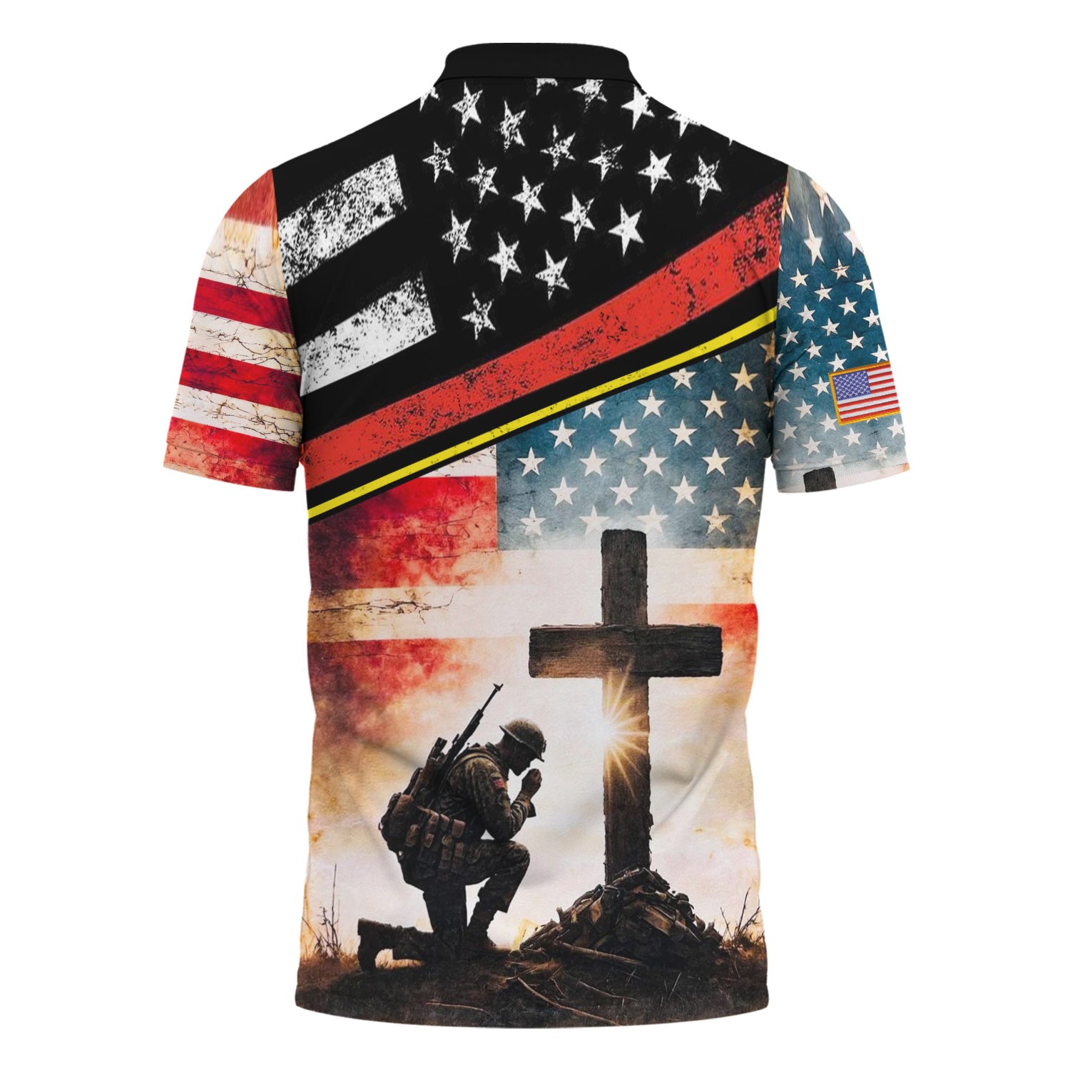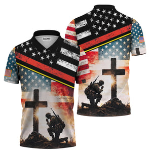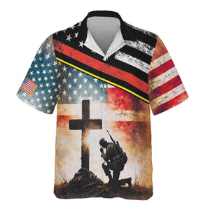 Christian Veteran Shirt, Soldier Kneeling at Cross American Flag Shirt, Patriotic Memorial Day Tee, Military Faith Gift for Men