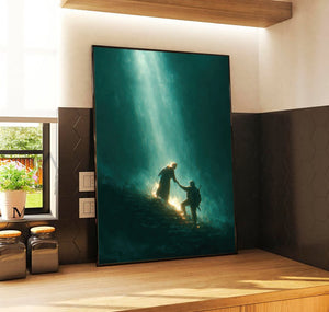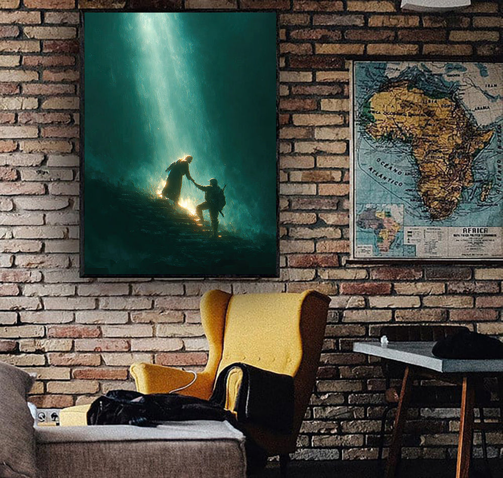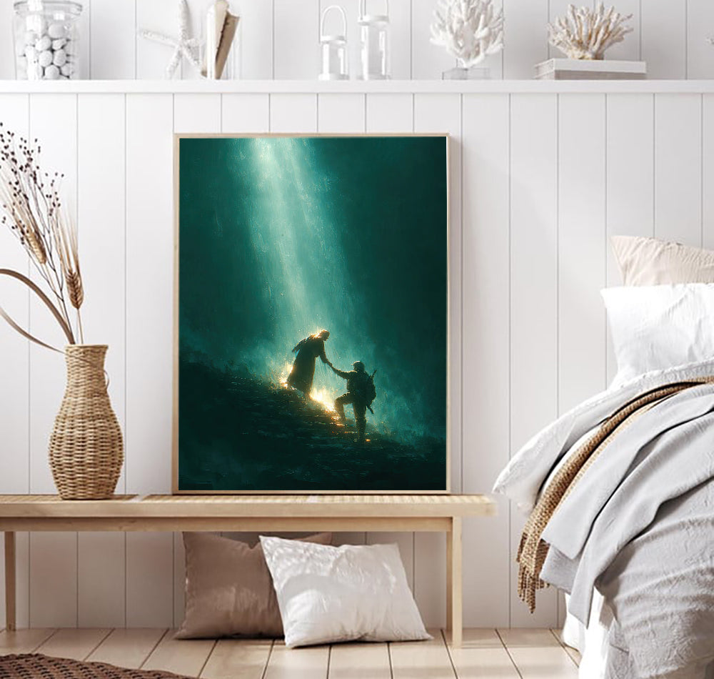 Christian Wall Art Jesus Saves Soldier, Faith Based Canvas Artwork, Inspirational Religious Home Decor Gift
