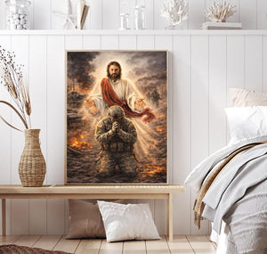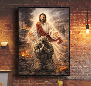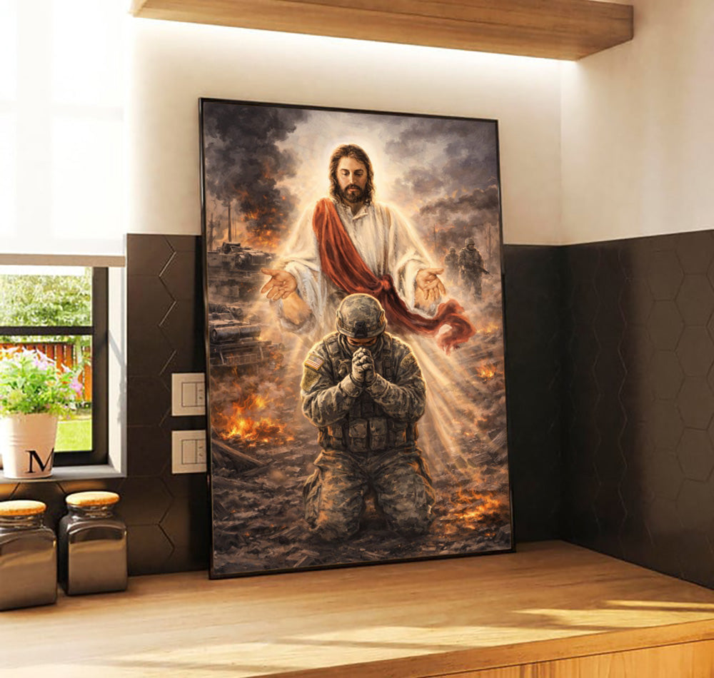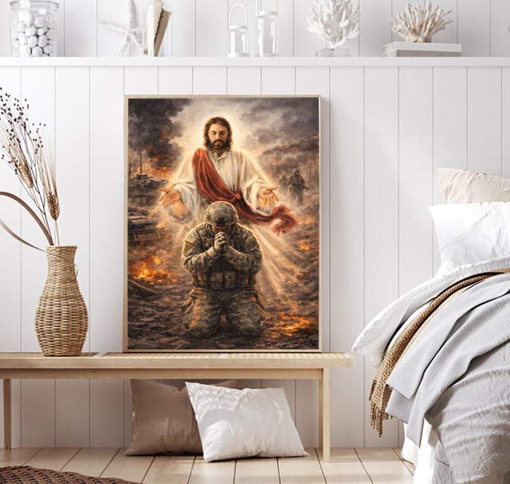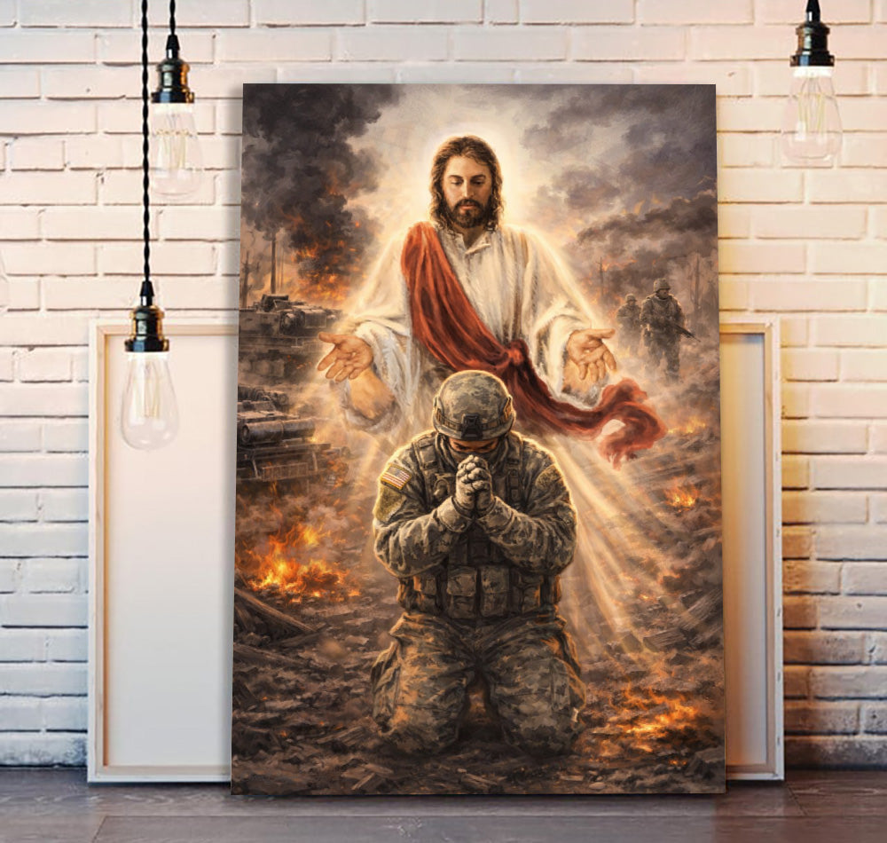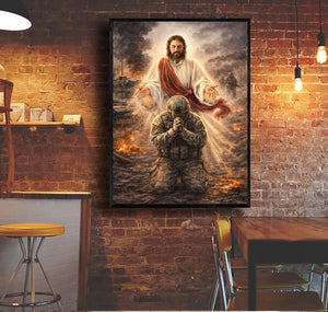 Christian Wall Art Jesus Watching Over Praying Soldier Military Faith Artwork Religious Canvas Home Decor