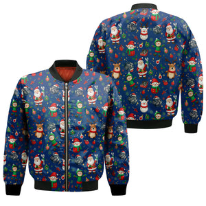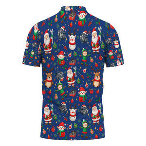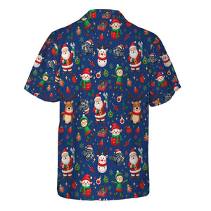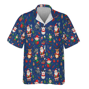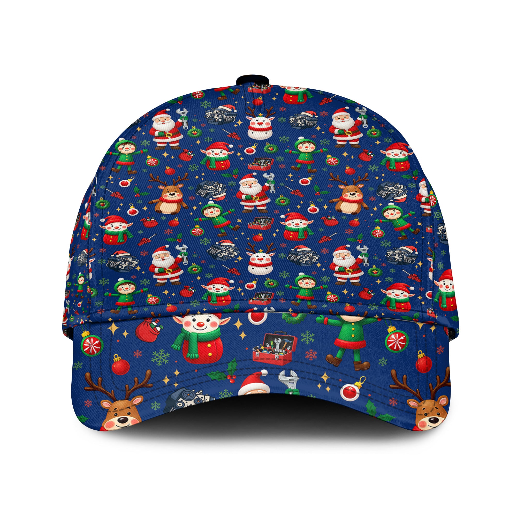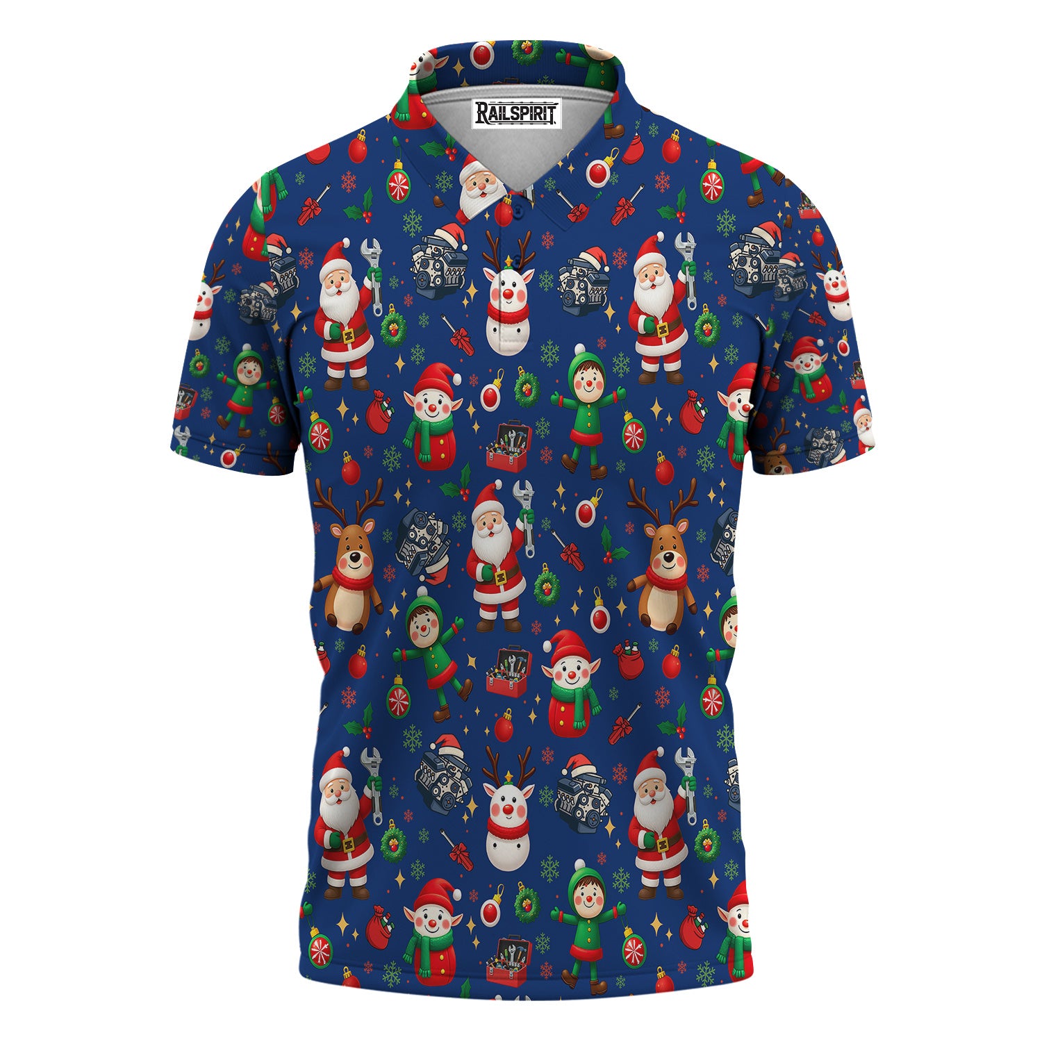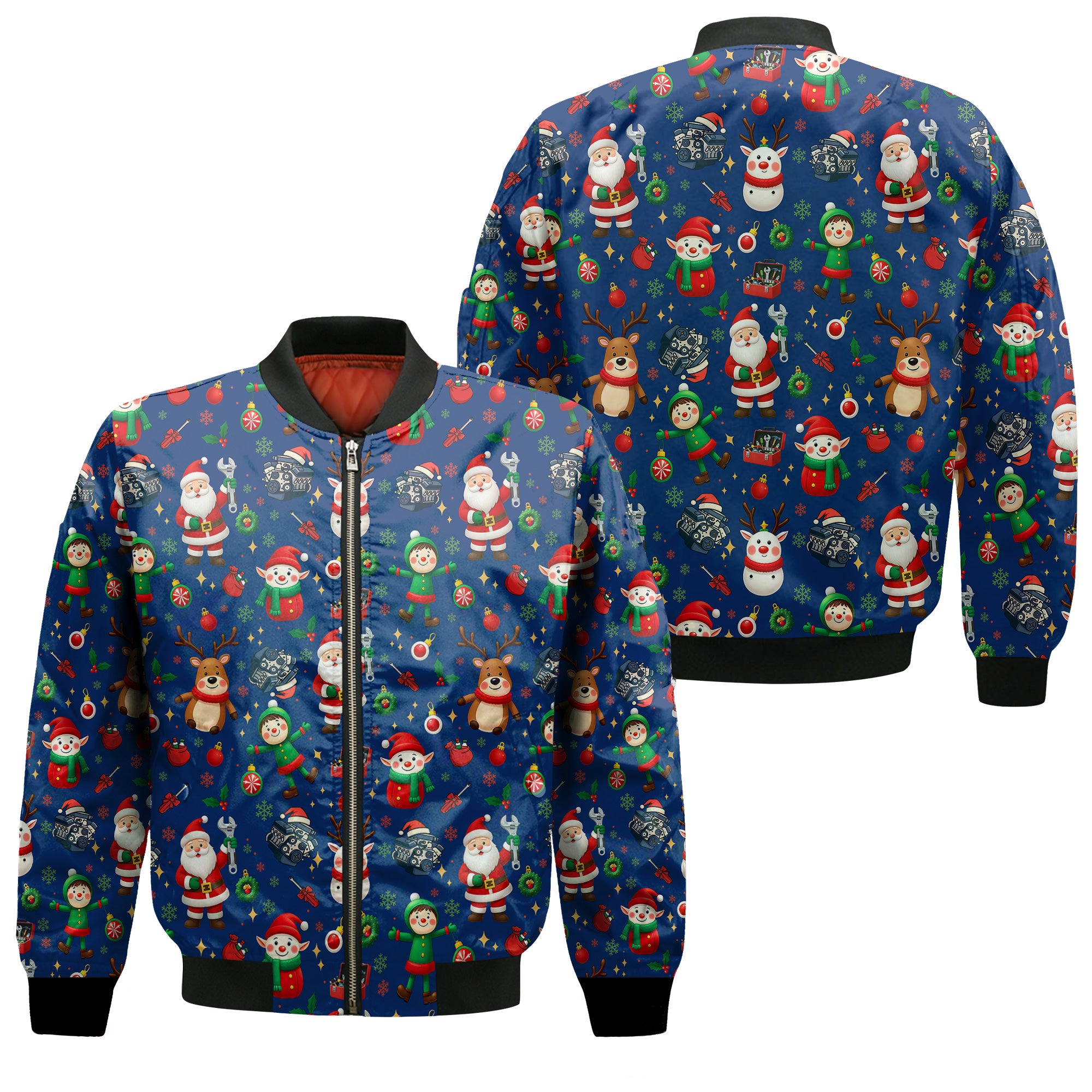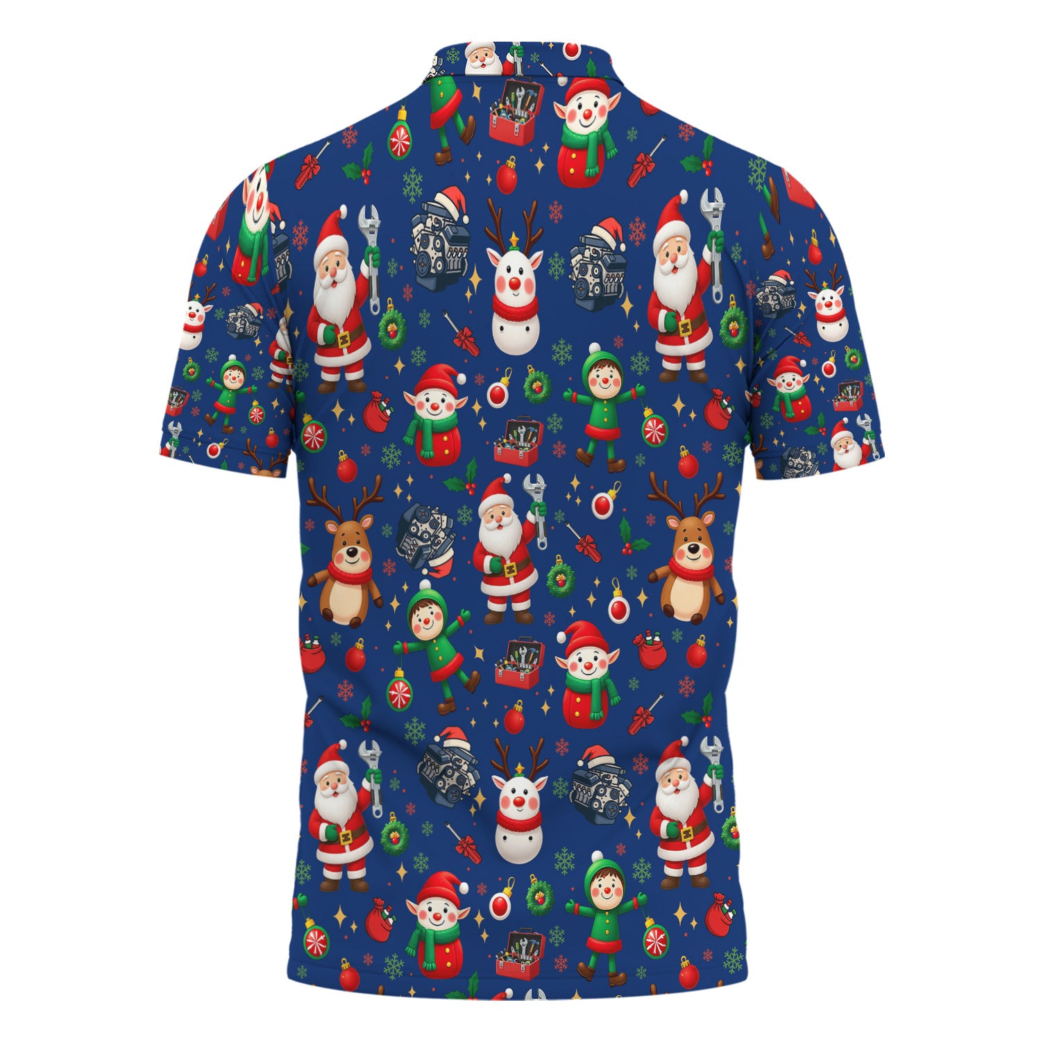 Christmas Mechanic All Over Print T-Shirt with Santa, Reindeer, Elves & Engine Tools, Festive Holiday Auto Mechanic Graphic Hoodie