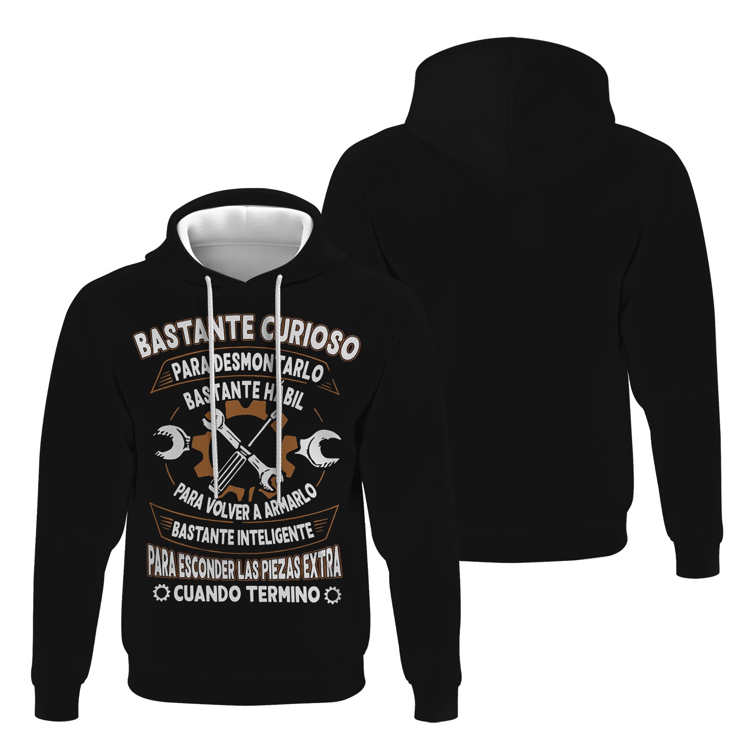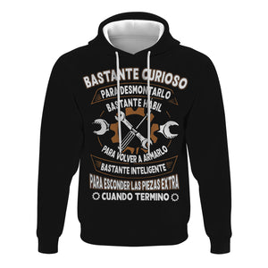Curious Enough To Take It Apart Skilled Enough Mechanic Hoodie Fun Gift for Mechanics Spanish tyle
