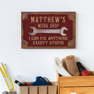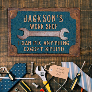 Personalized Garage Sign Funny Metal Sign For Him I can Fix Anything Except Stupid Sign Garage Decor