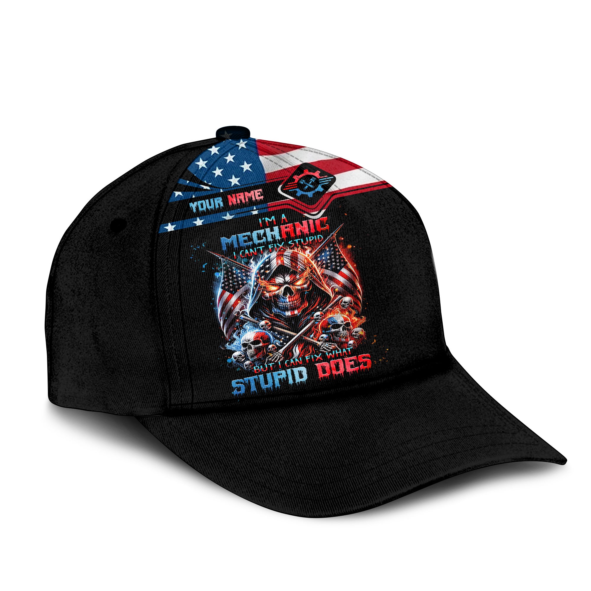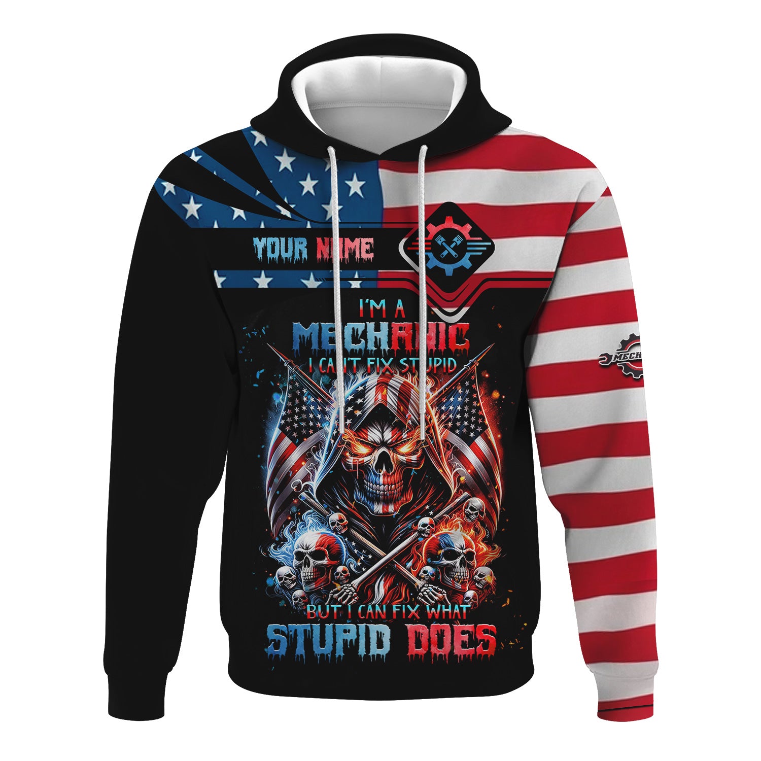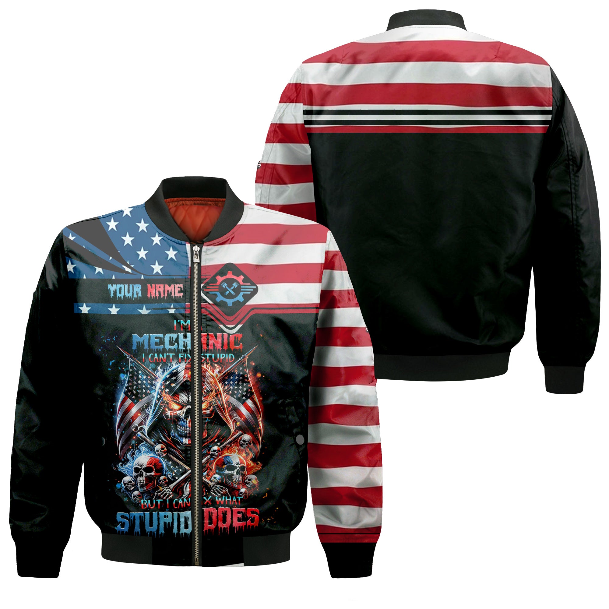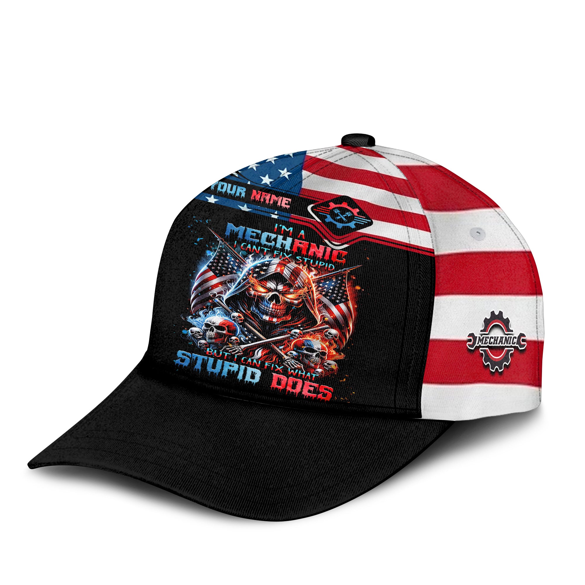 Custom Mechanic Shirt, Fix Stupid Design, Personalized Name, American Flag Skull Graphic, Funny Mechanic T-shirt for Men & Women