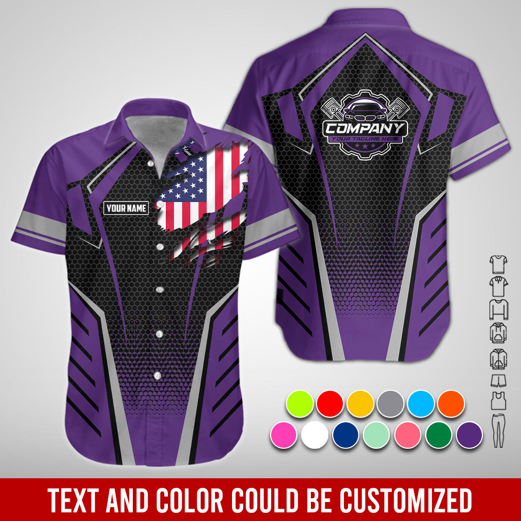 Custom Mechanic Shirt with Name, Purple Garage Uniform, Gift for Car Guys & Technicians, Comfortable Daily Fit, Perfect Garage Apparel