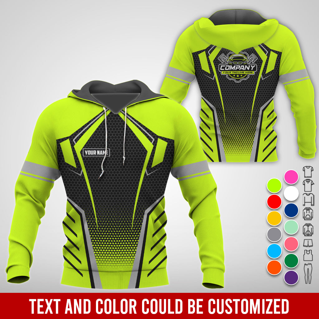 Custom Mechanic Work Shirt with Name, Gift for Technicians and Car Guys, Mechanic Shirt In Green Yellow, Sizes S to 5XL