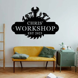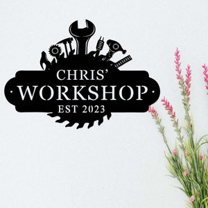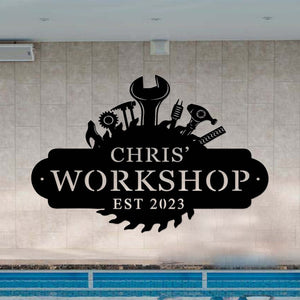 Custom Metal Workshop Sign, Tools Repair Metal Wall Art, Personalized Builder Name Sign, Constructor Workshop Decor, Garage Sign