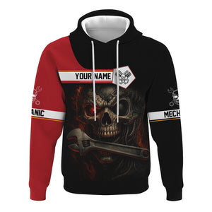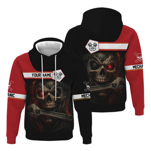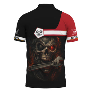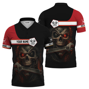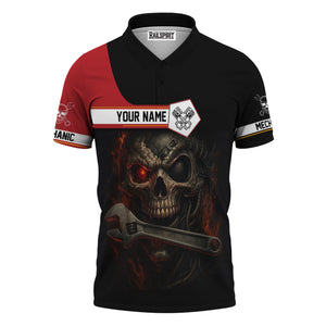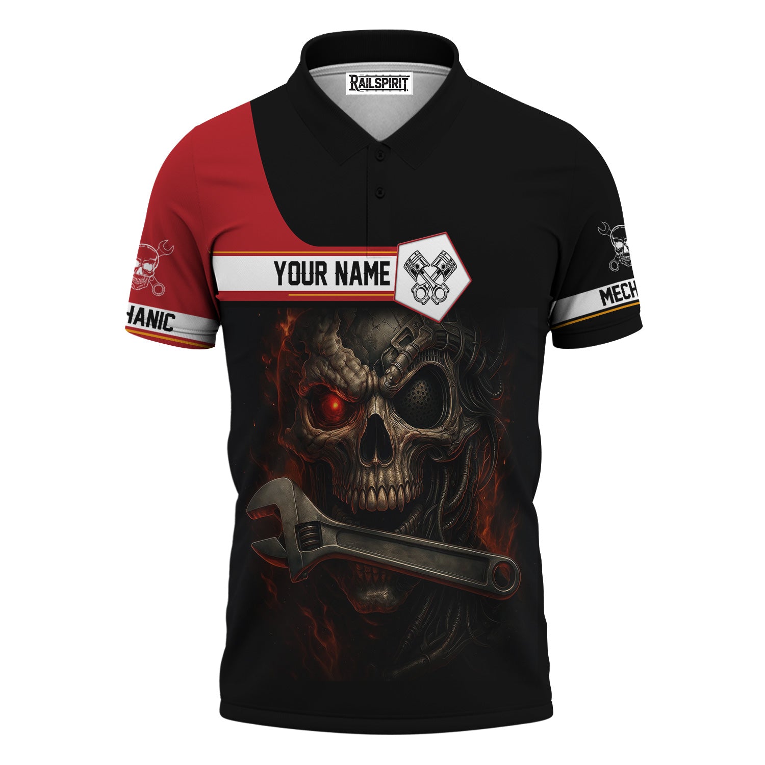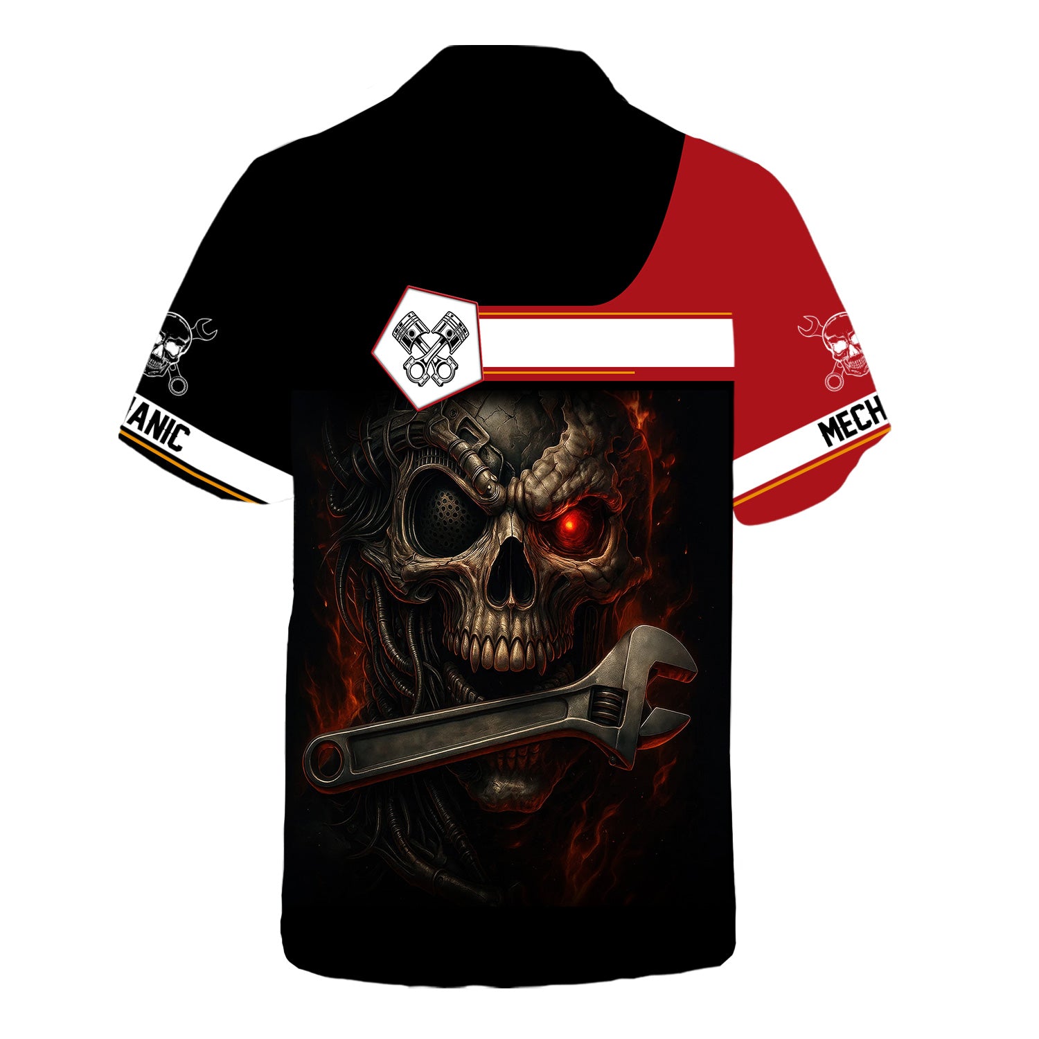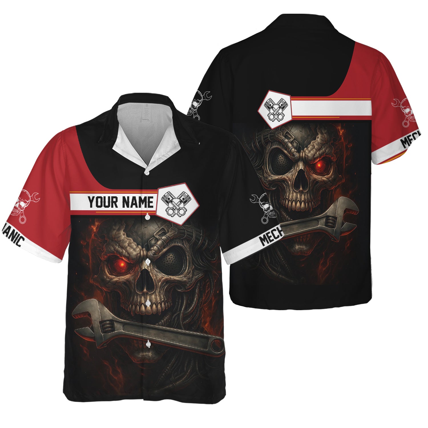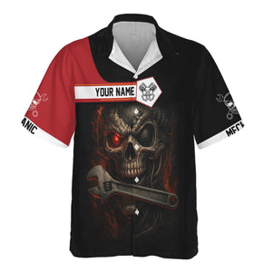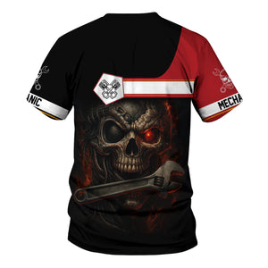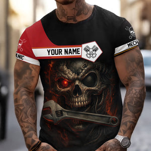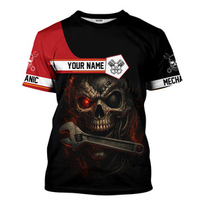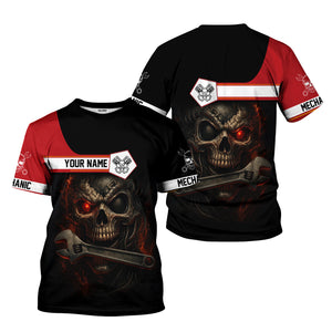 Custom Name Mechanic Shirt Cyber Skull with Wrench Design T Shirt