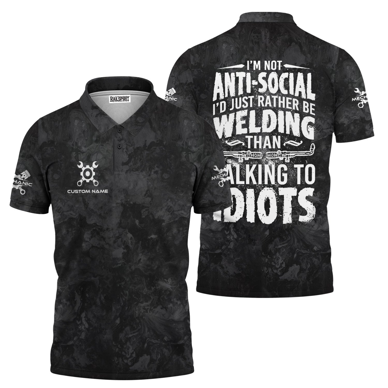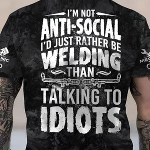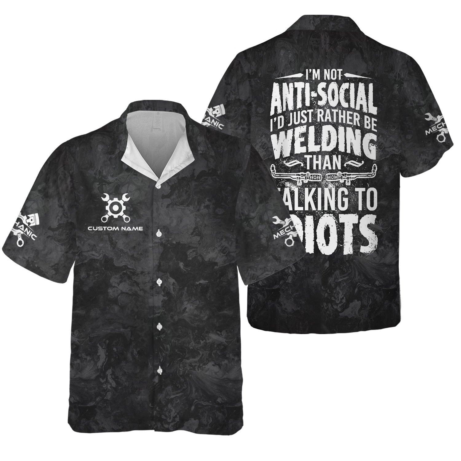 Custom Name Mechanic Shirt I'm Not Anti Social I'd Just Rather Be Welding T Shirt