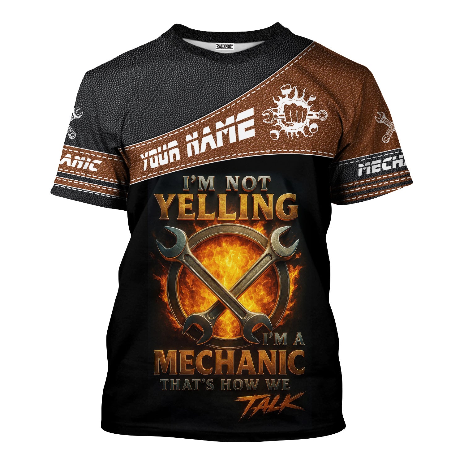 Custom Name Mechanic Shirt I'm Not Yelling I'm A Mechanic That's How We Talk T Shirt