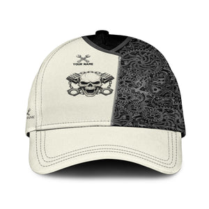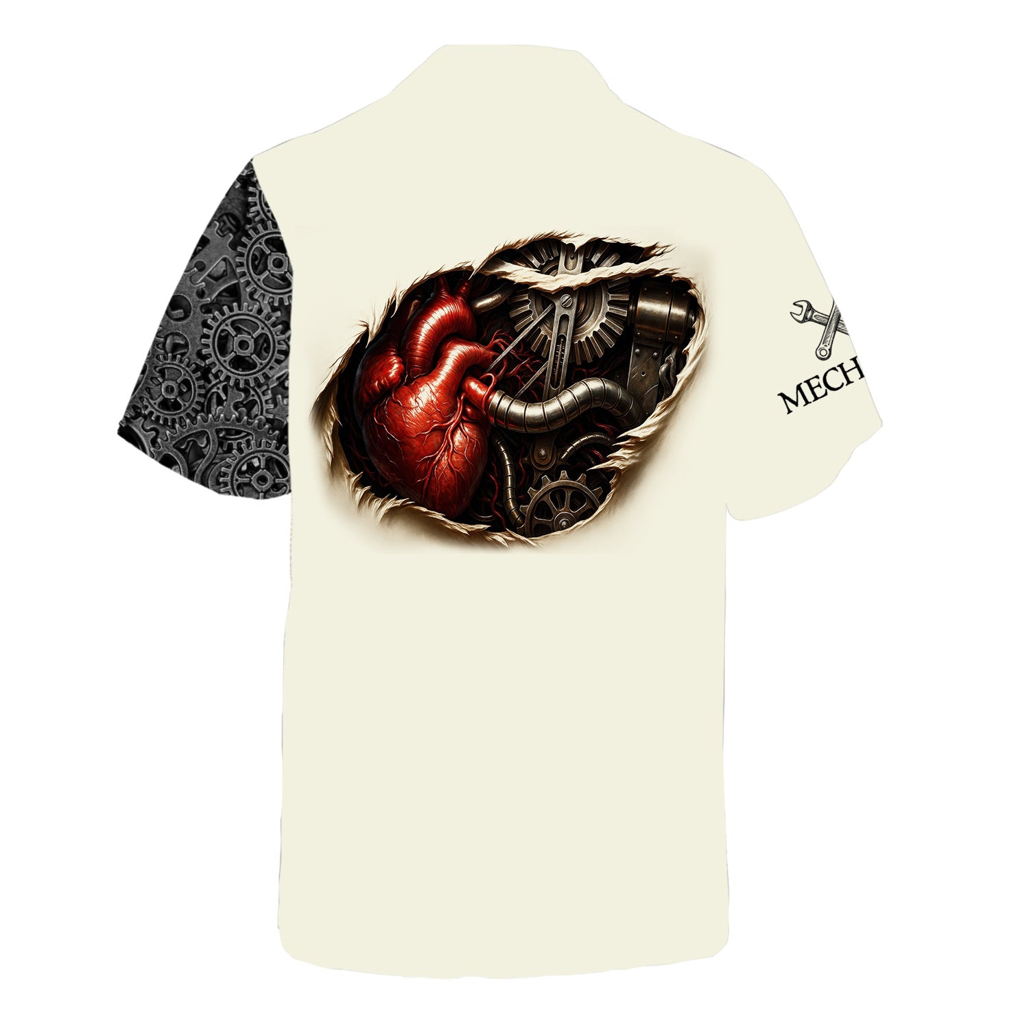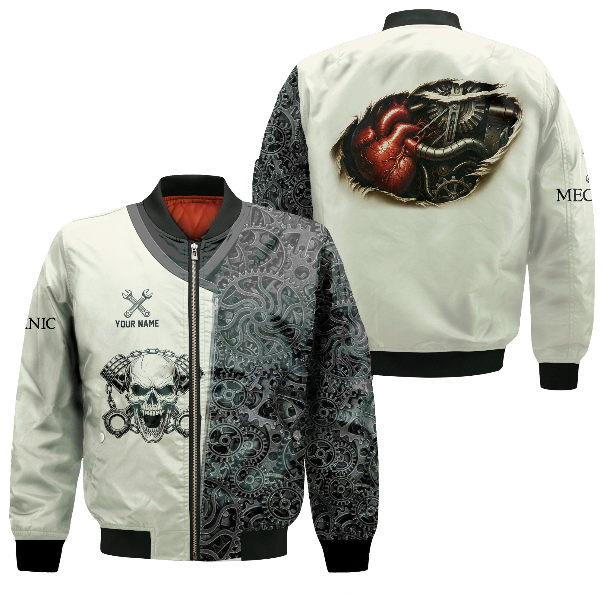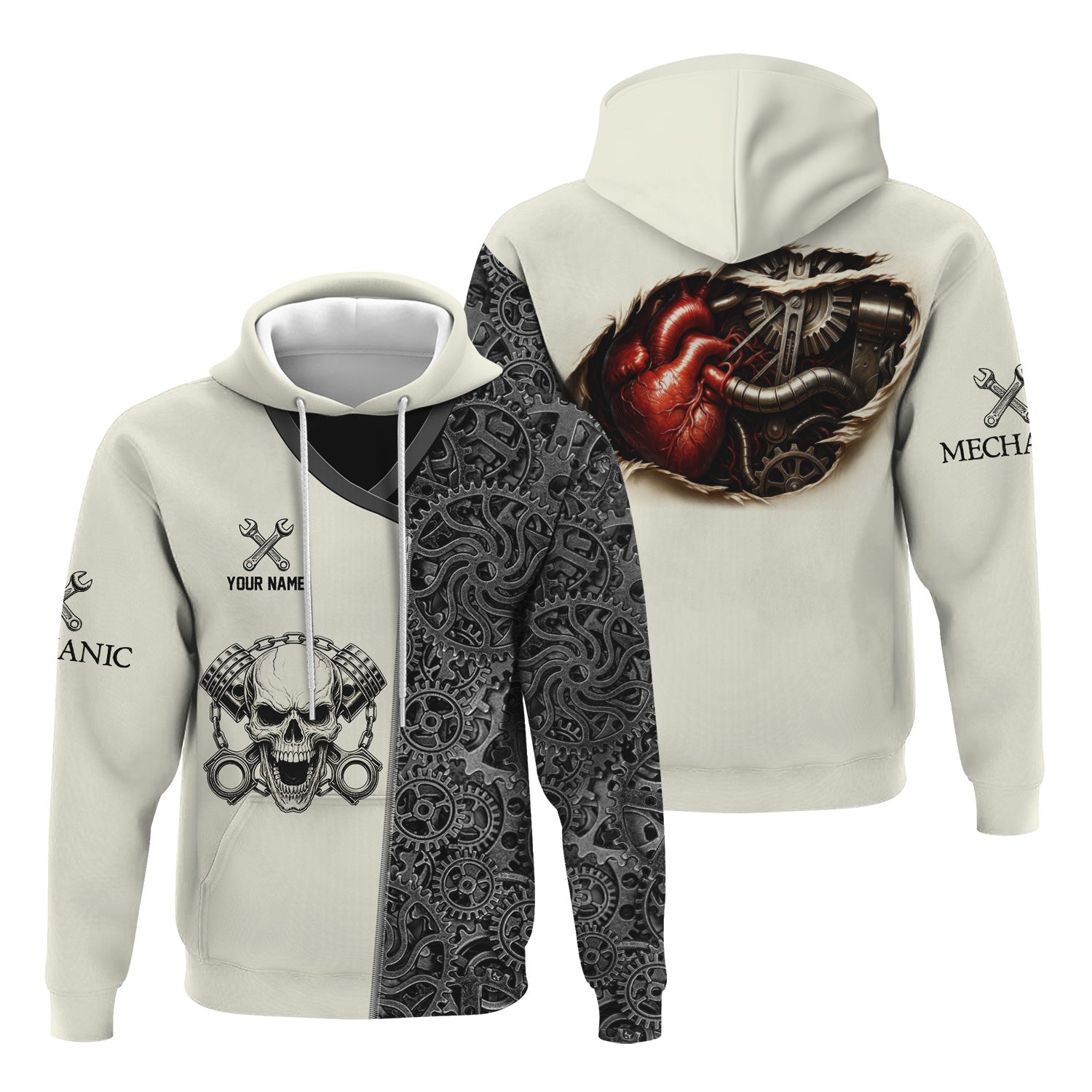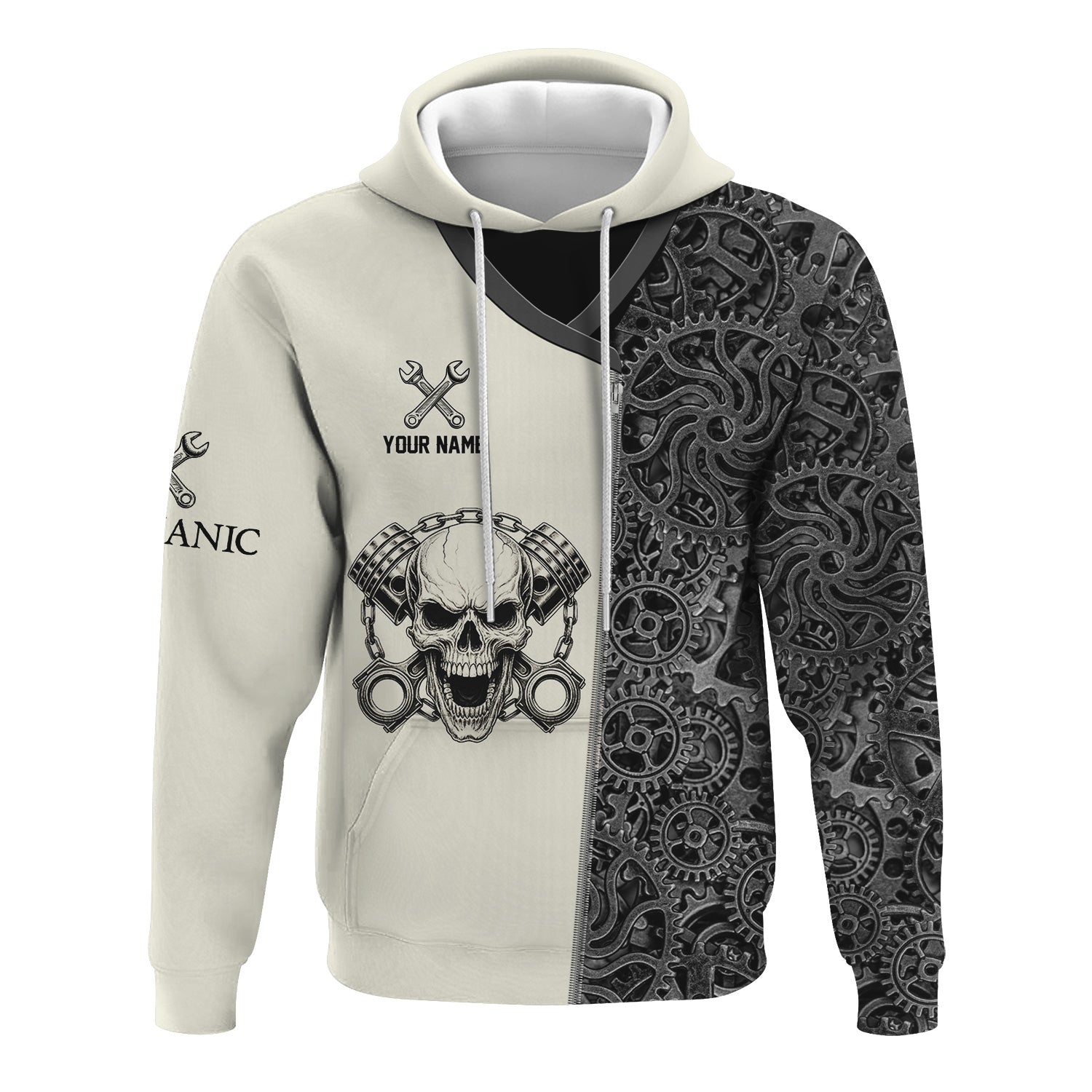 Custom Name Mechanic Shirt Skull with Engine Piston Design Gear Pattern T Shirt All Over Printed