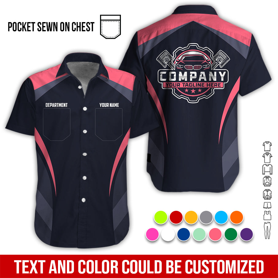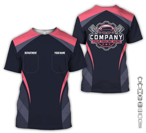 Custom Name Mechanic Shirt, Unisex Neon Pink Crew Shirt for Automotive Workers, Perfect Gift for Him, 3D Printed Pocket Shirt