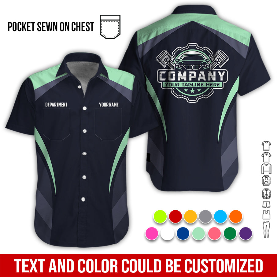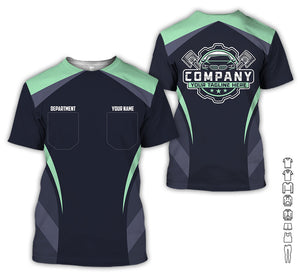 Custom Name Mechanic Shirt, Unisex Seafoam Crew Shirt for Automotive Workers, Perfect Gift for Him, 3D Printed Pocket Shirt