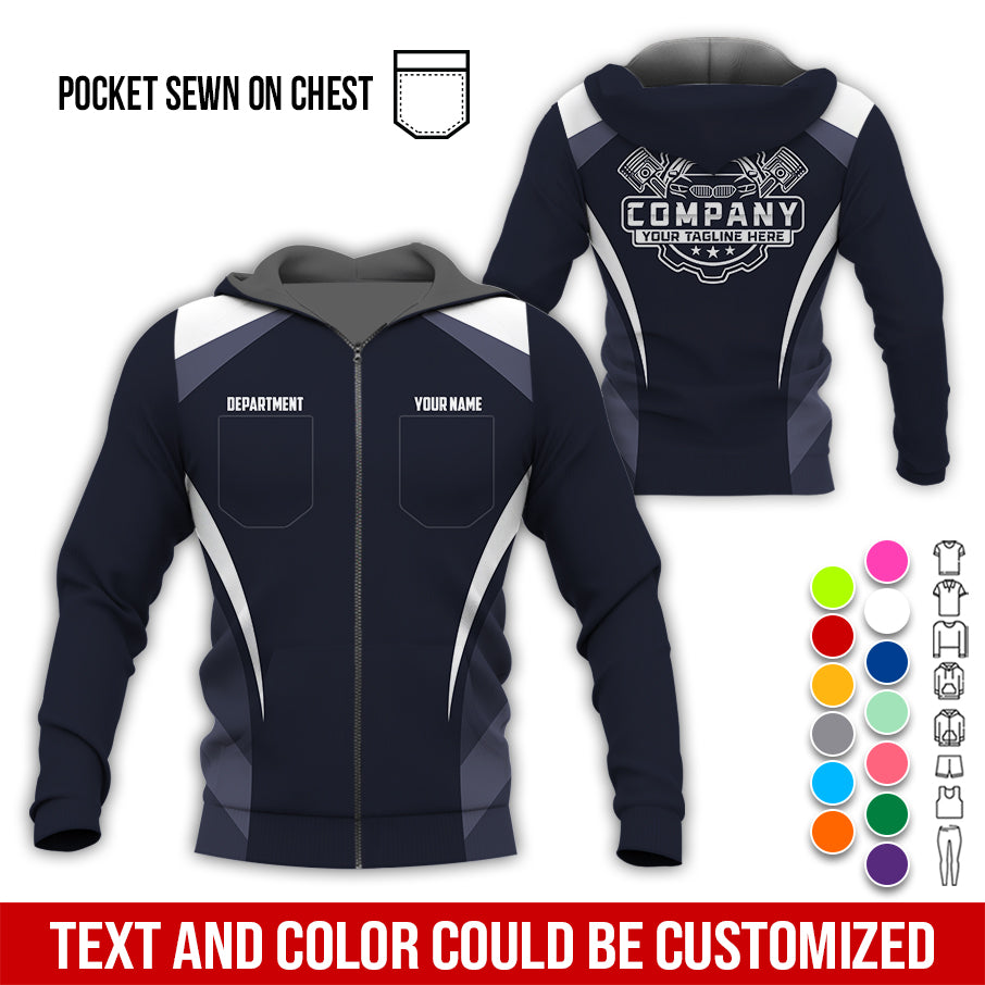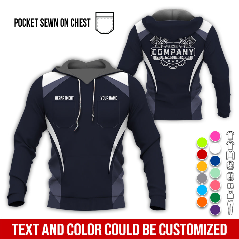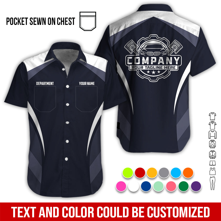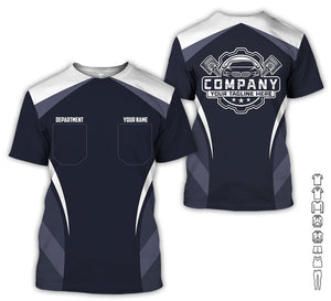 Custom Name Mechanic Shirt, Unisex White Crew Shirt for Automotive Workers, Perfect Gift for Him, 3D Printed Pocket Shirt