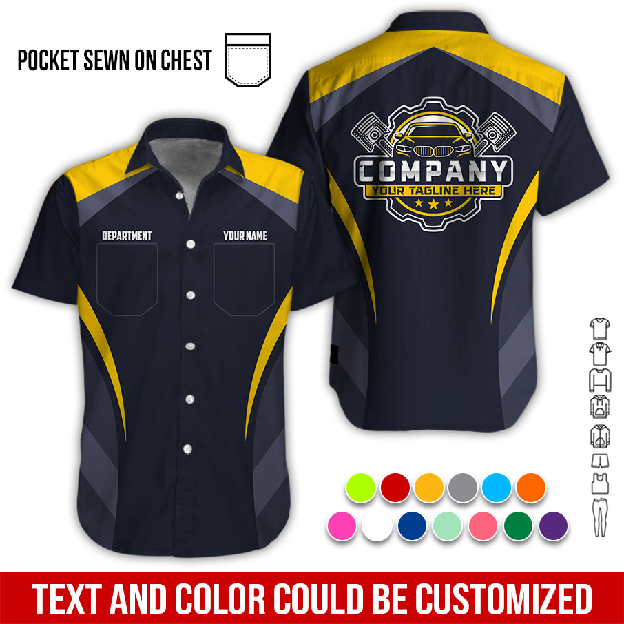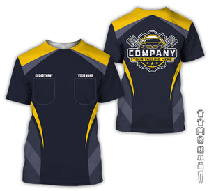 Custom Name Mechanic Shirt, Unisex Yellow Crew Shirt for Automotive Workers, Perfect Gift for Him, 3D Printed Pocket Shirt