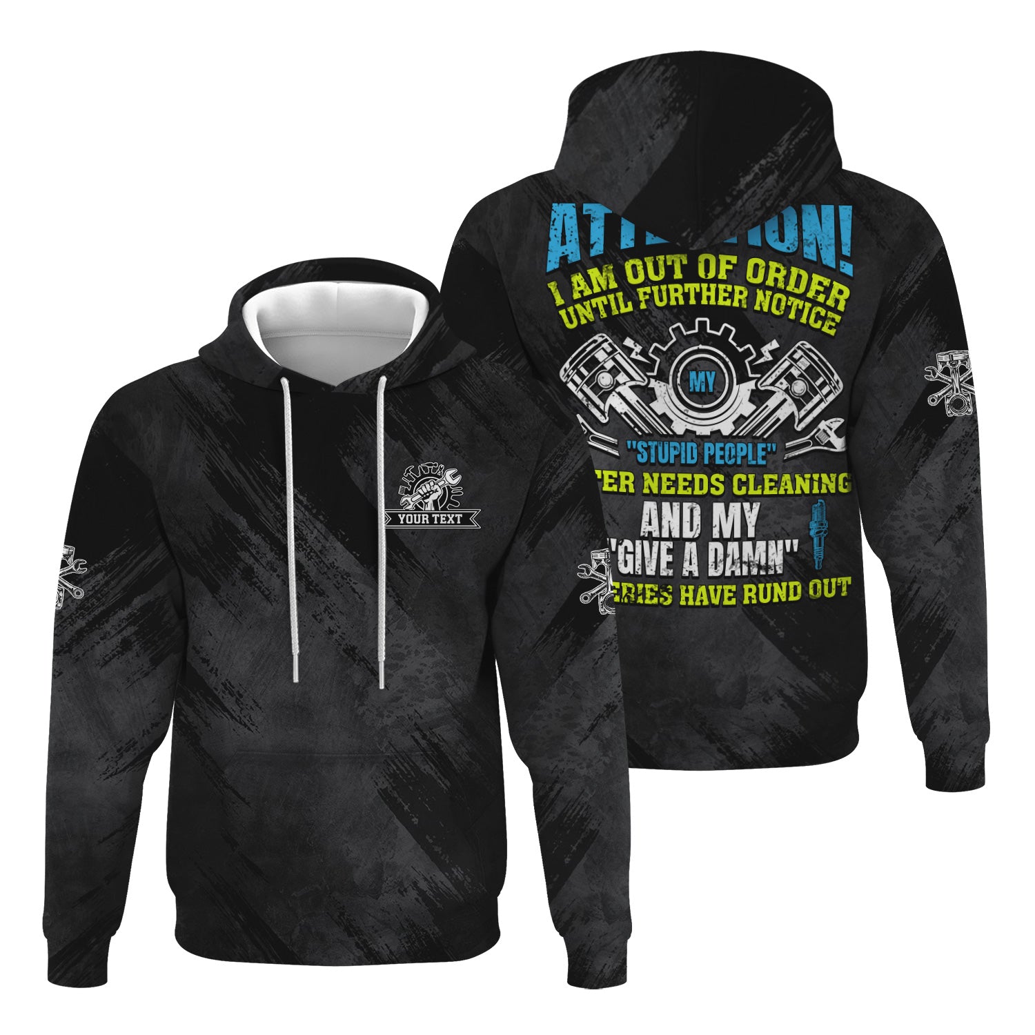 Custom Name Mechanic T Shirt Attention I Am Out Of Order Mechanic Shirt All Over Print