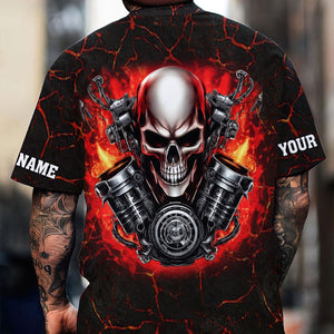 Custom Name Skull Mechanic Shirt Flame Style Printed Jacket Hoodie All Over Print