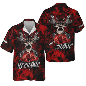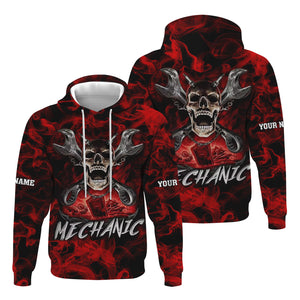 Custom Name Skull Mechanic Shirt Flame Style Printed Jacket Hoodie All Over Print