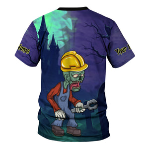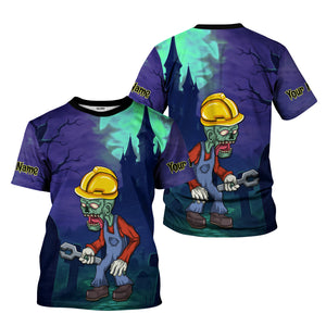 Custom Name Zombie Mechanic T Shirt Haunted House Halloween Shirt For Mechanic