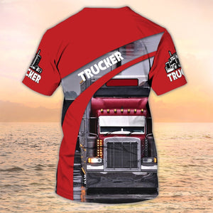 Custom Red Trucker T Shirt For Men & Women, 3D Truck Sublimation On Shirt, Gift For Trucker