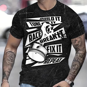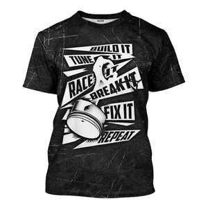 Funny Car Racing T Shirt Build It Tune It Race It Break It Fix It Repeat Piston Auto Repair Tee Mechanic Garage Workwear Gift for Men