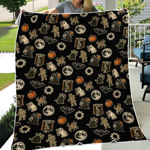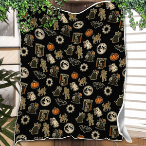 Funny Halloween Mechanic Blanket , Spooky Pumpkin Ghost Mummy Spider Bat Moon Costume Funny Scary Blanket for Mechanic