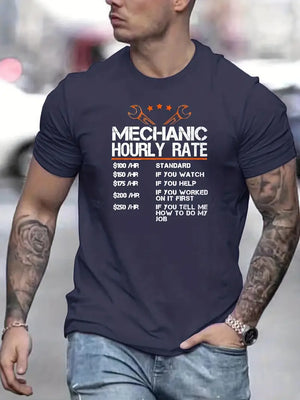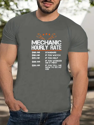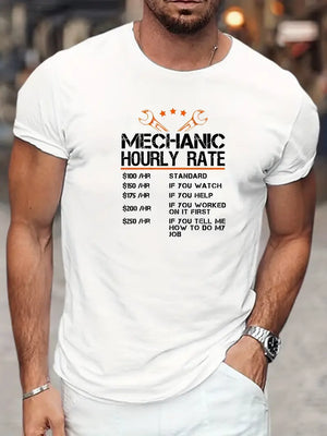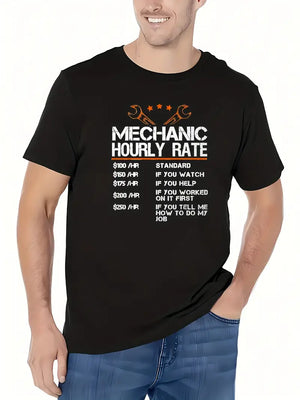 Funny Mechanic Hourly Rate Print T-Shirt, Gift for Mechanic Fathers, Tops As Gifts, T-shirt For Summer