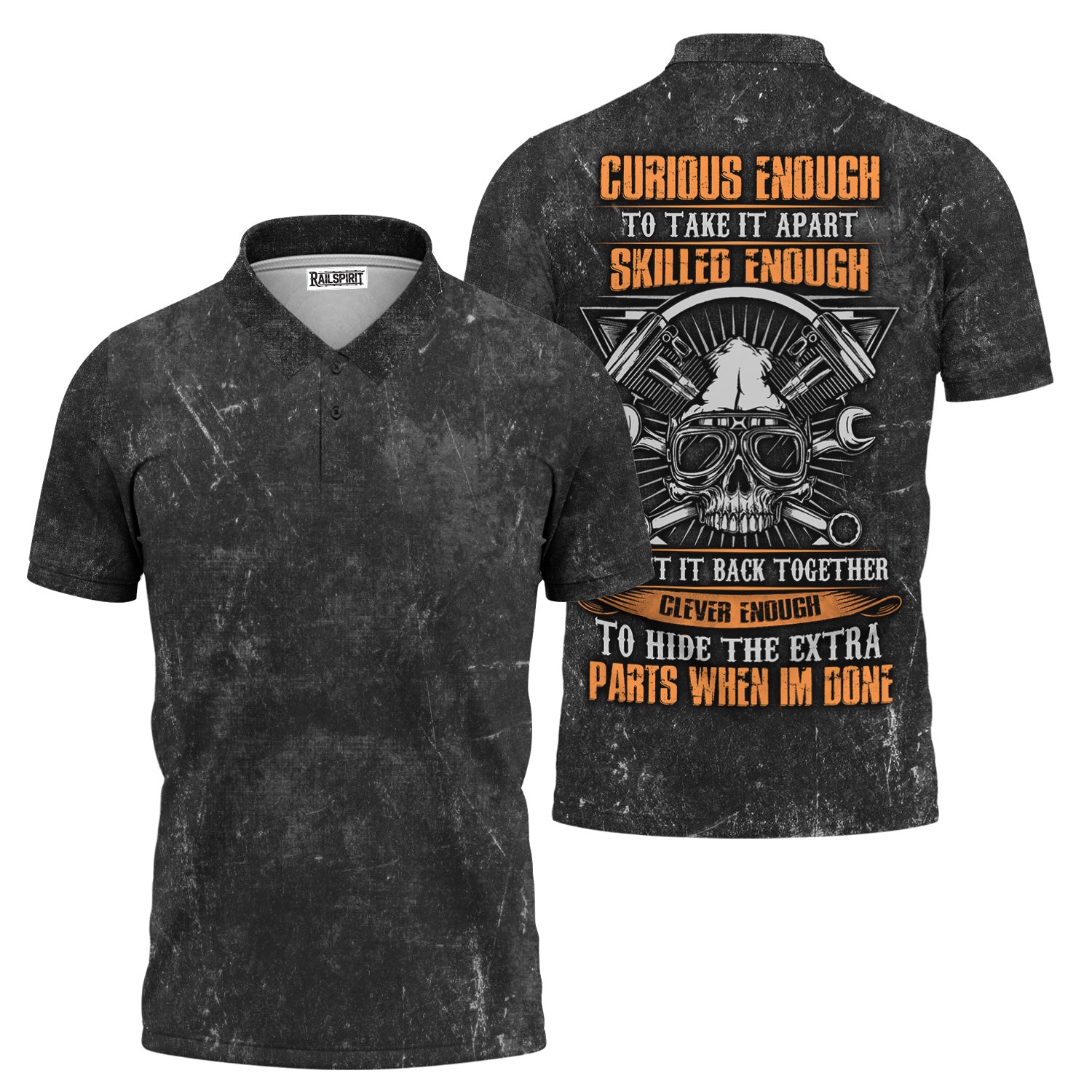 The print is awesome and the shirt fits just right. Perfect for any mechanic who loves bold style.