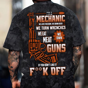 Funny Mechanic T Shirt We Love Freedom We Drink Beer We Turn Wrenches Auto Repair Garage Workwear Tee Patriotic Gift For Men Dad Husband