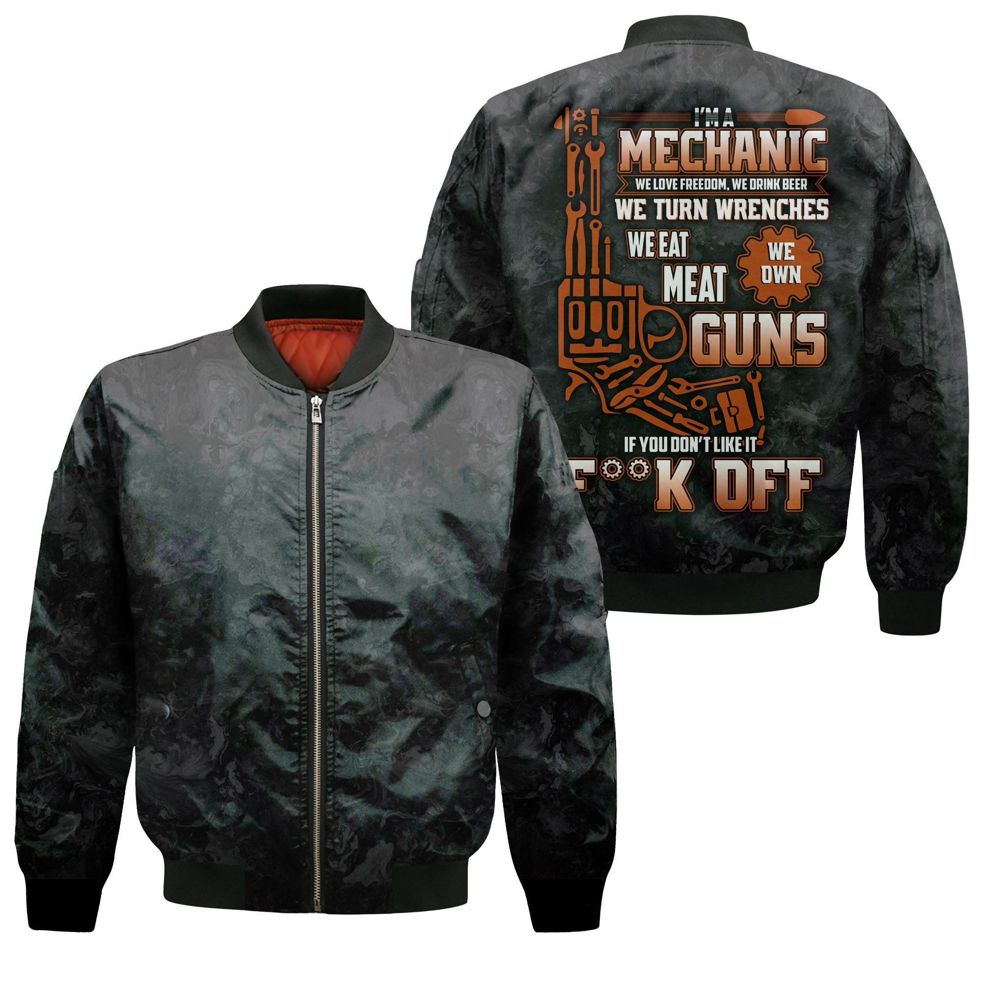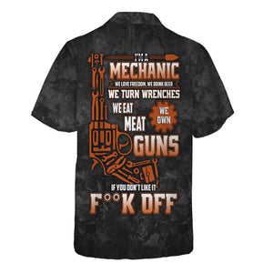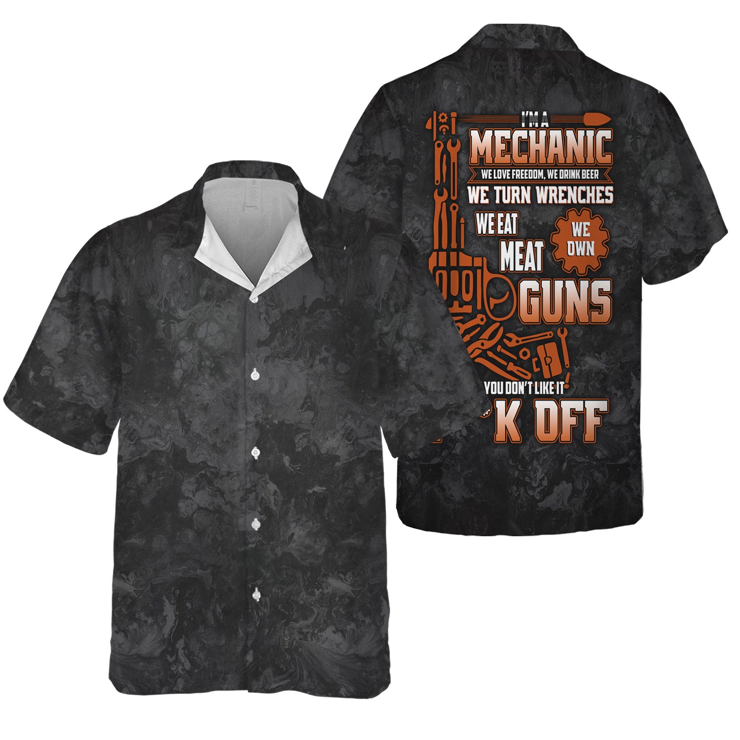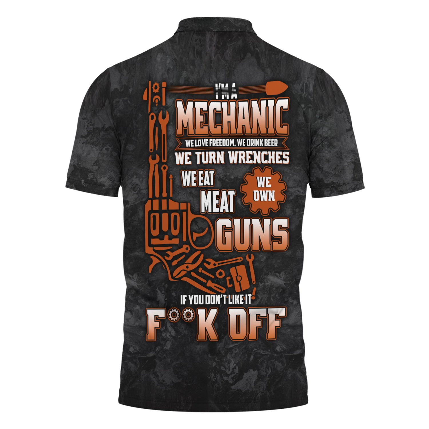 The print is awesome and the shirt fits just right. Perfect for any mechanic who loves bold style.