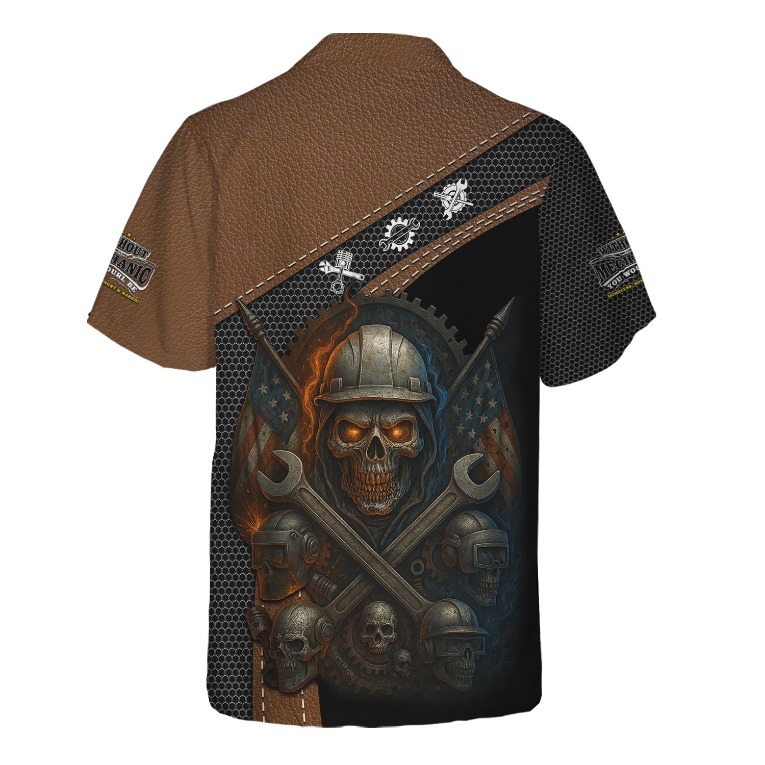 The print is awesome and the shirt fits just right. Perfect for any mechanic who loves bold style.