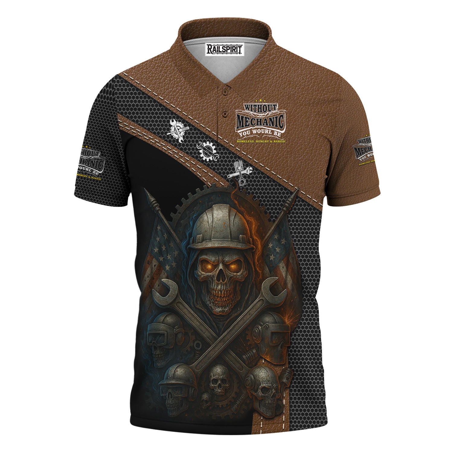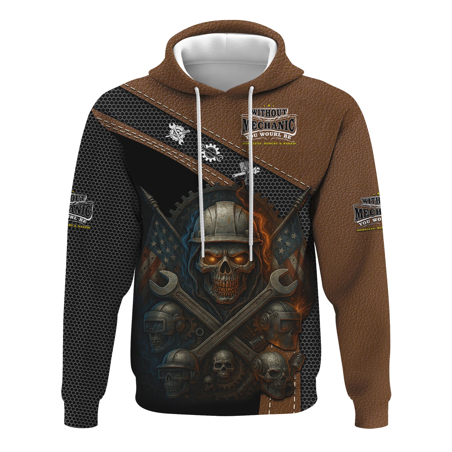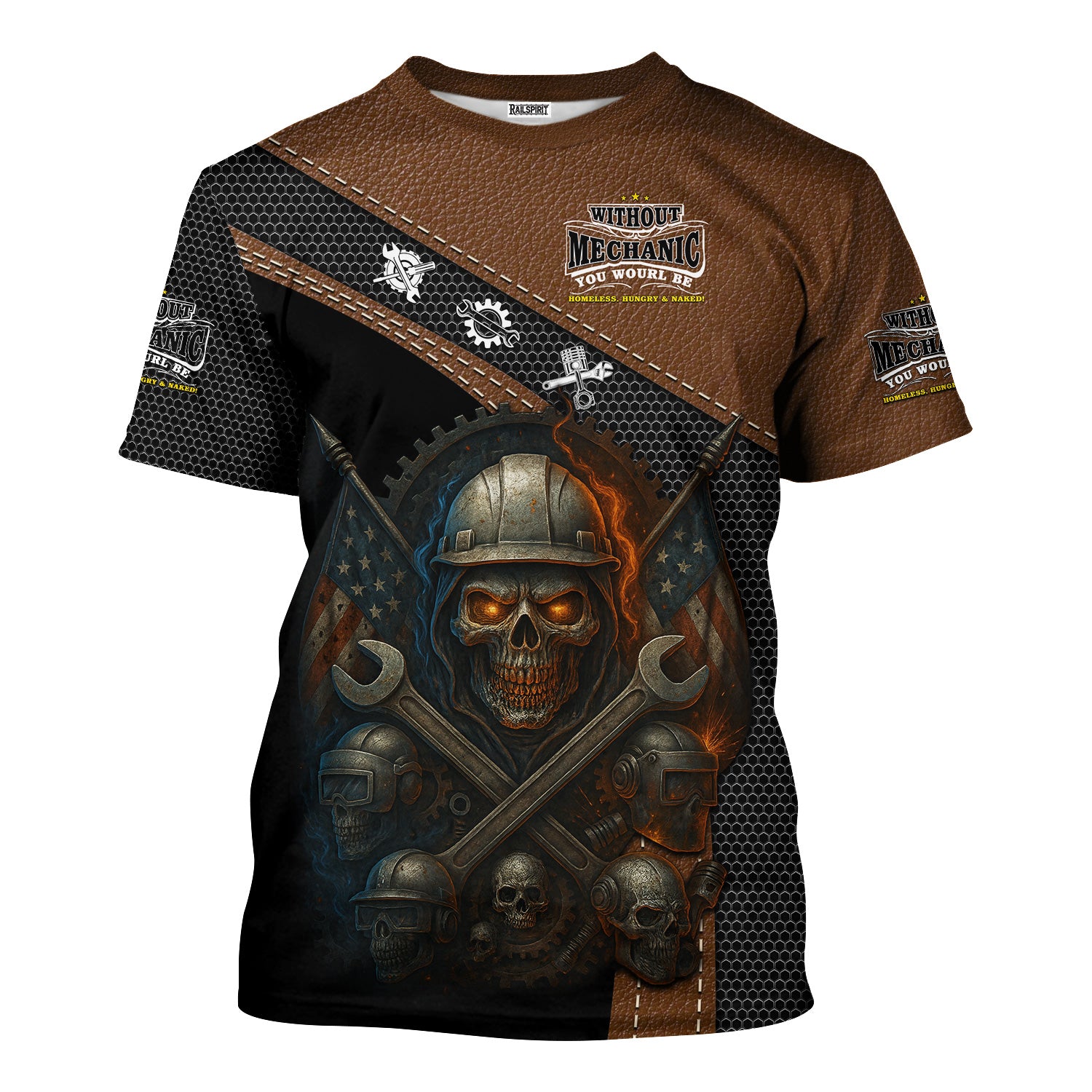 Skull Mechanic T Shirt Without Mechanic You Would Be Homeless Hungry Naked American Flag Auto Repair Garage Workwear Gift For Men Dad