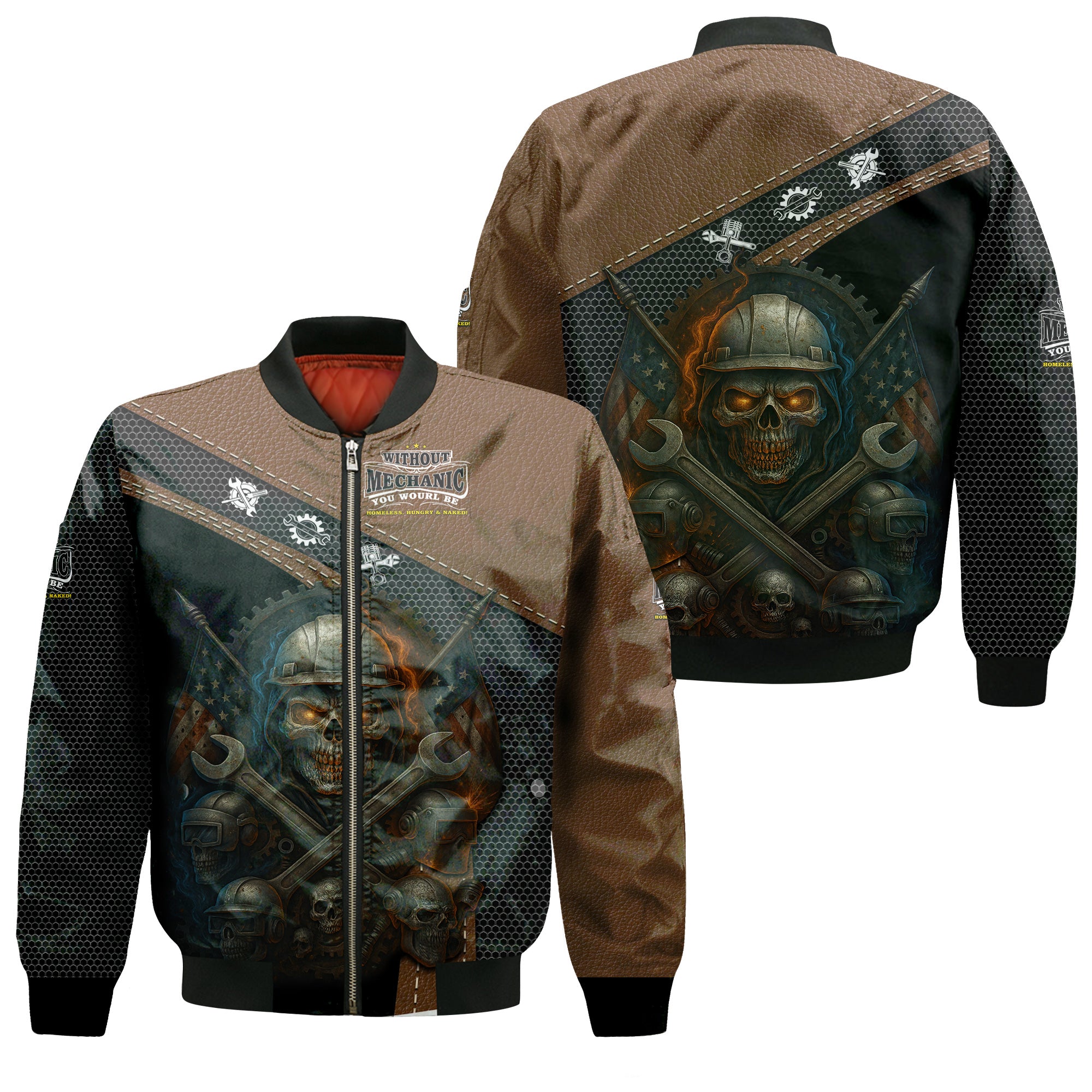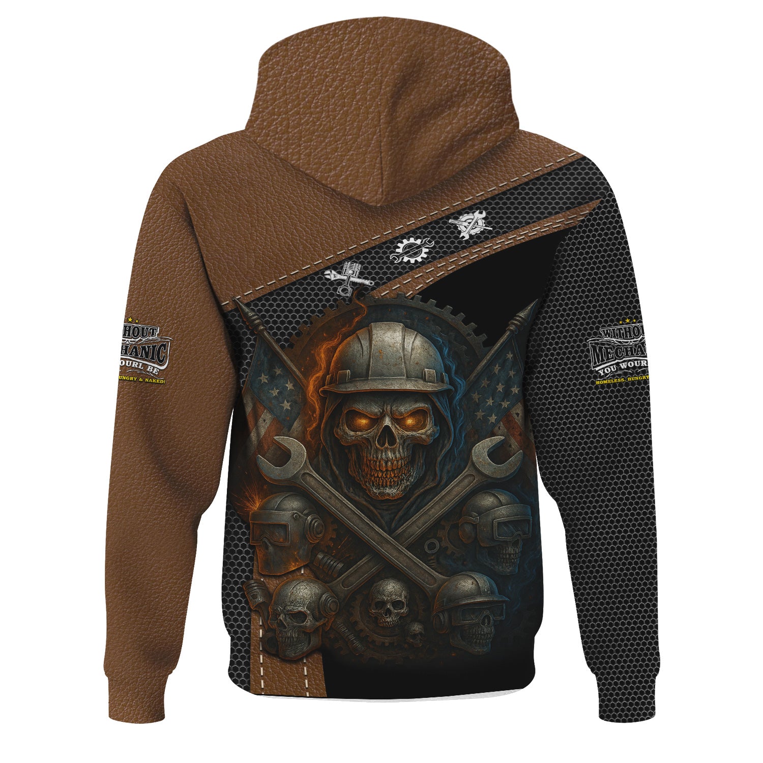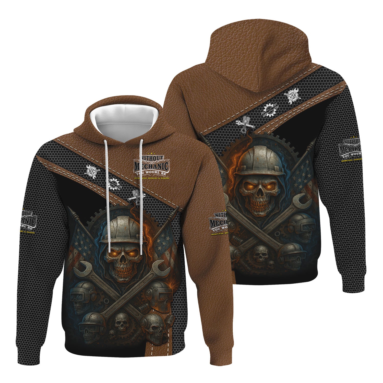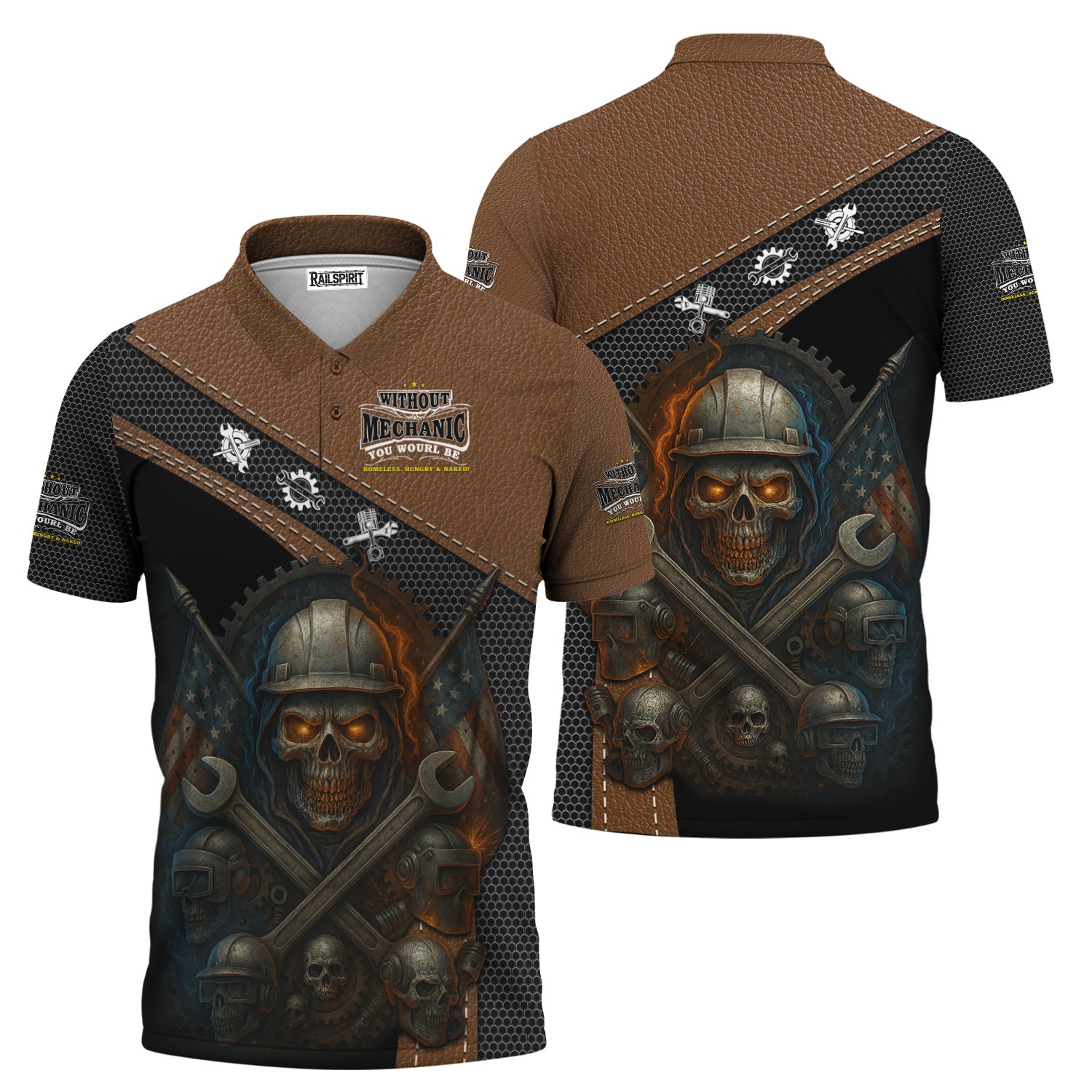 Skull Mechanic T Shirt Without Mechanic You Would Be Homeless Hungry Naked American Flag Auto Repair Garage Workwear Gift For Men Dad