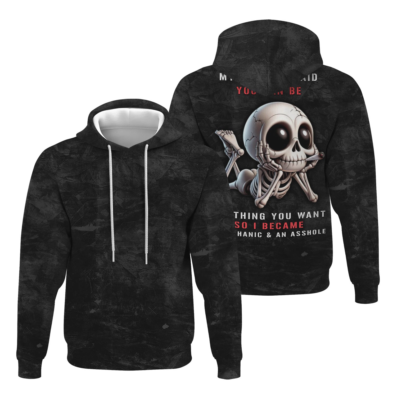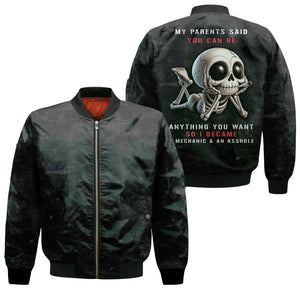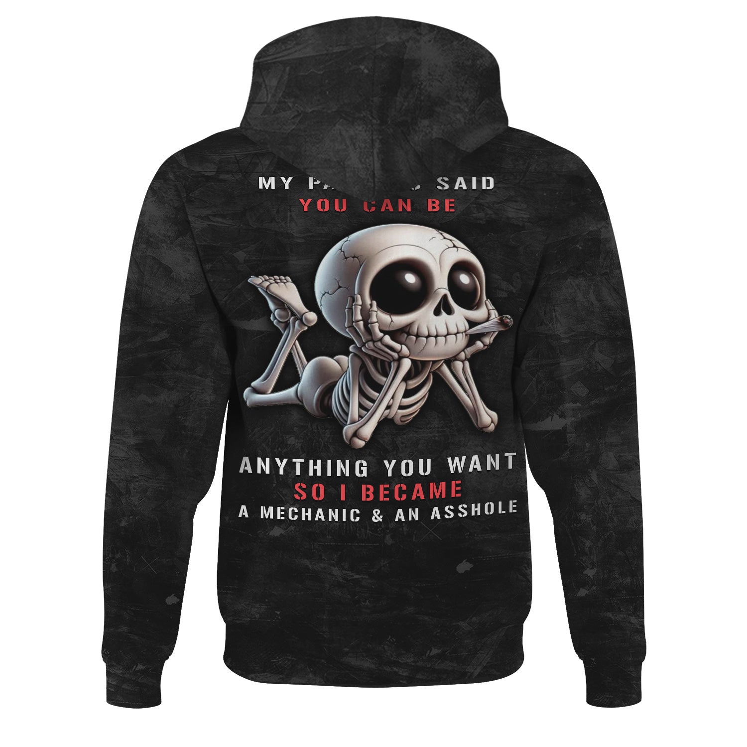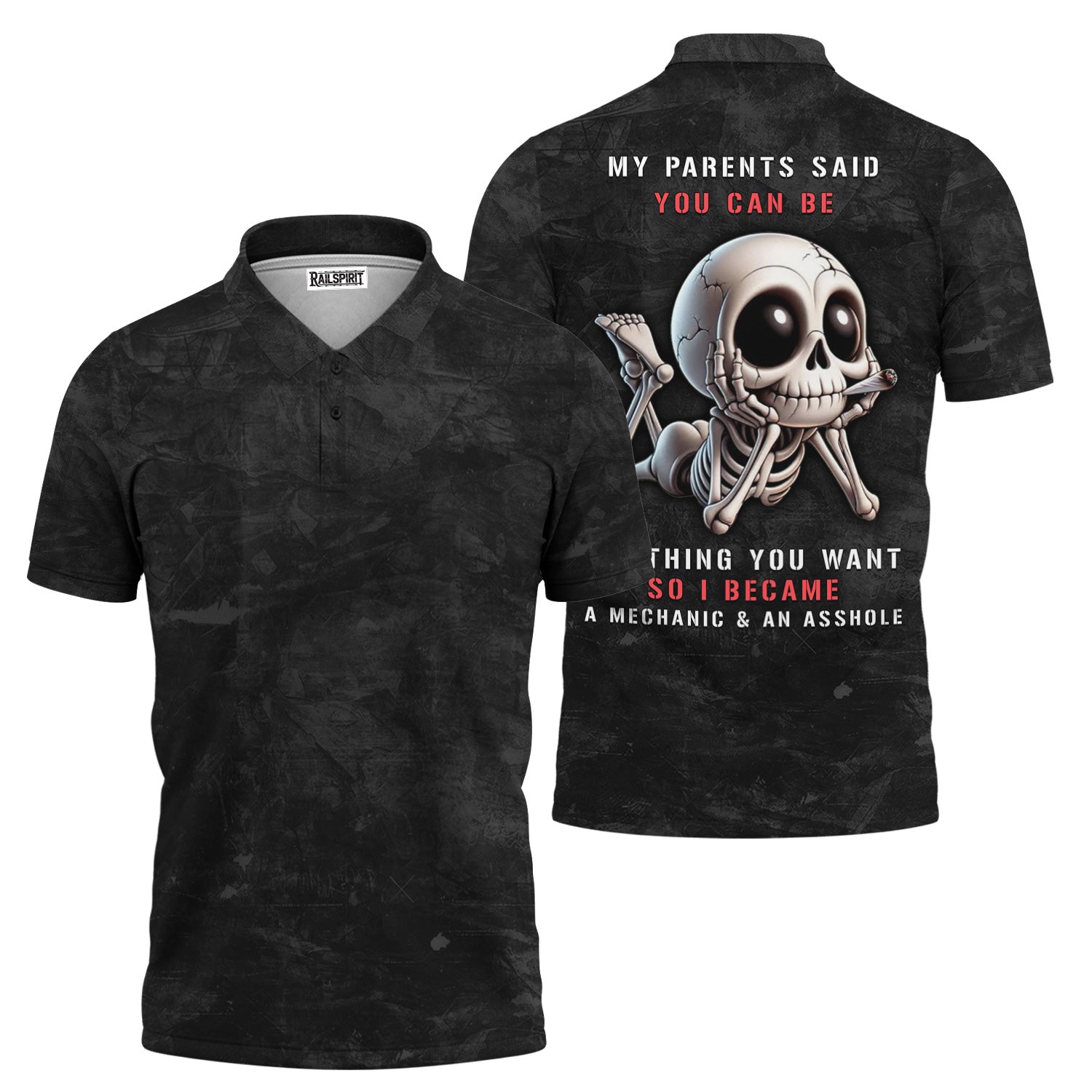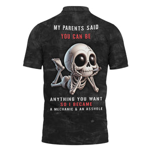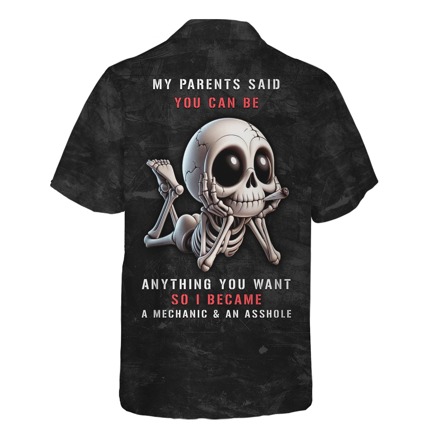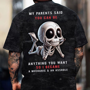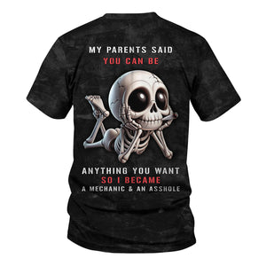 Funny Skeleton Mechanic Shirt, My Parents Said I Can Be Anything Unique Humor Apparel for Mechanics and Rebels, Funny Gift for Men