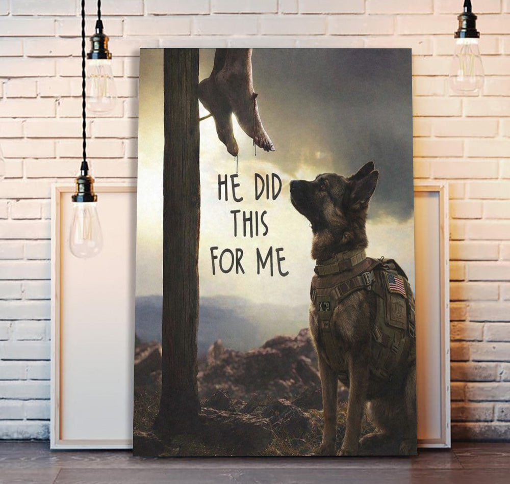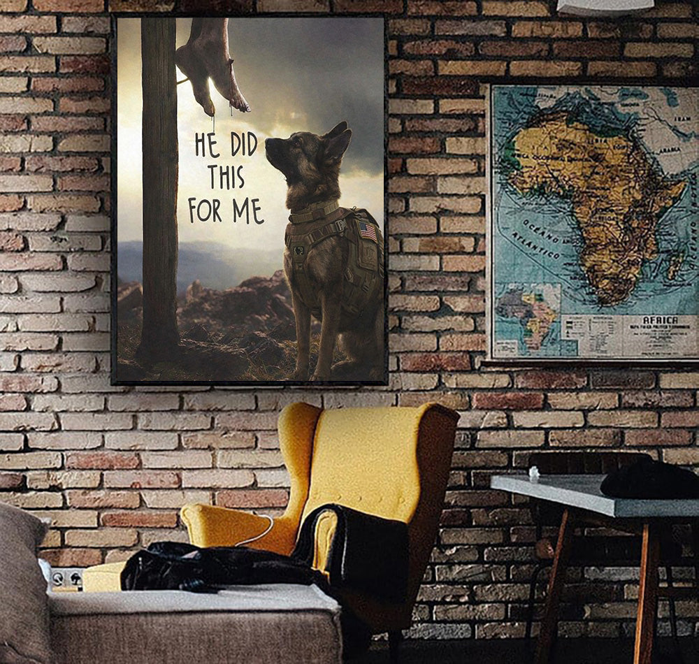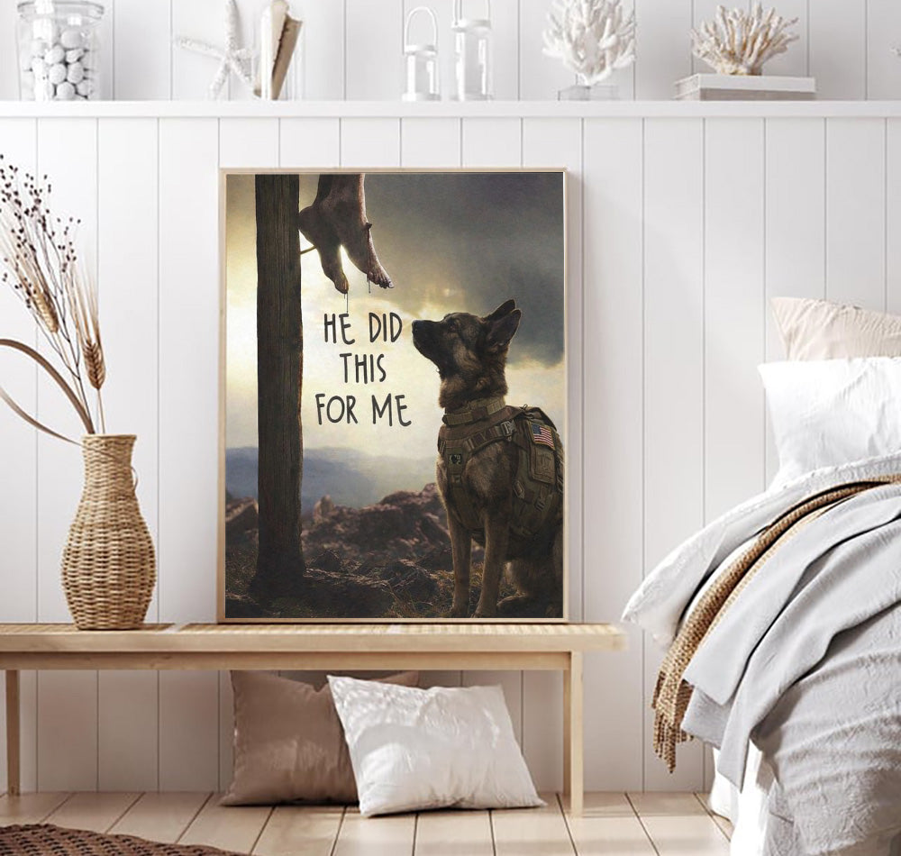 He Did This For Me Christian Wall Art Canvas, Jesus Cross With Military Dog Poster, Religious Faith Canvas, Inspirational Gift