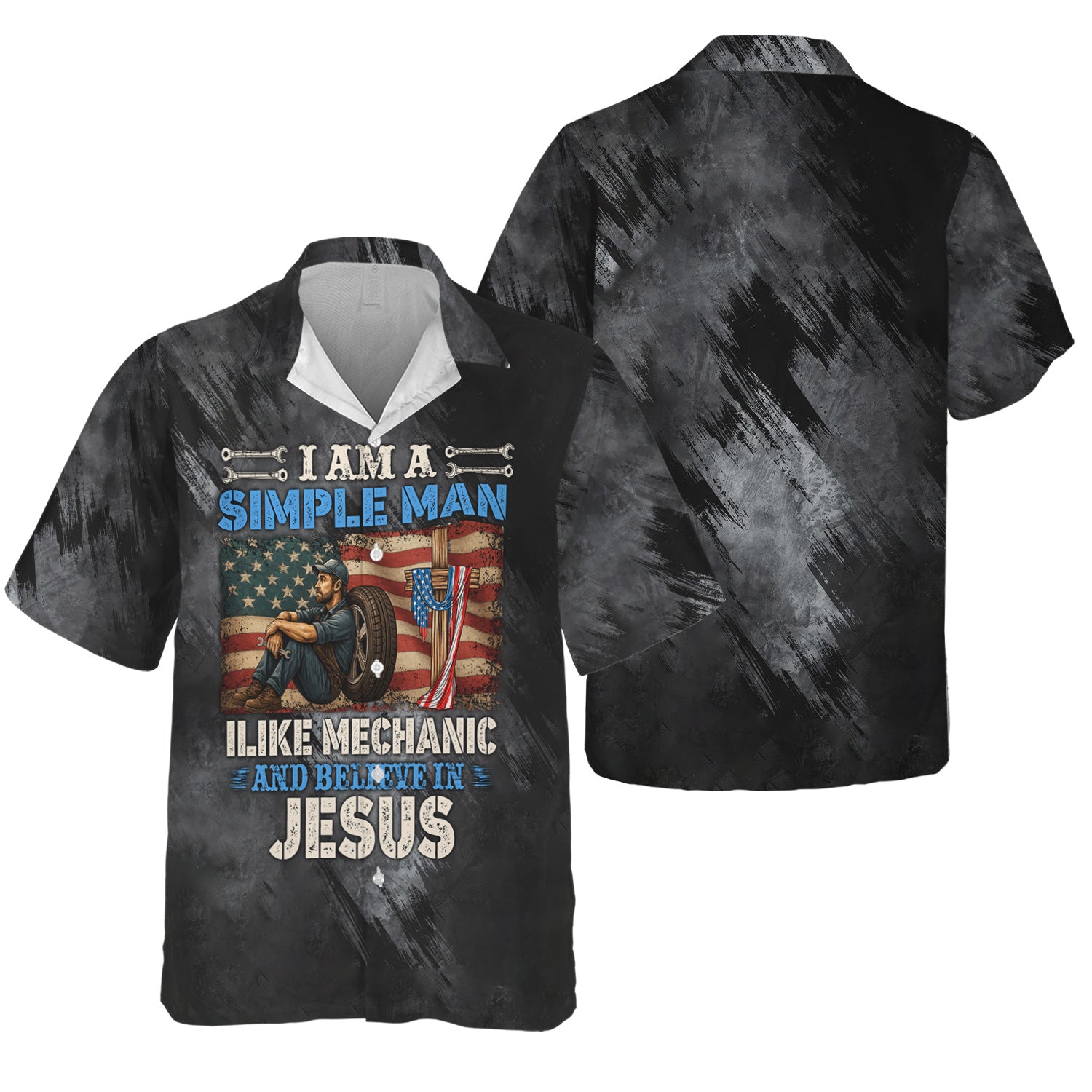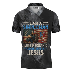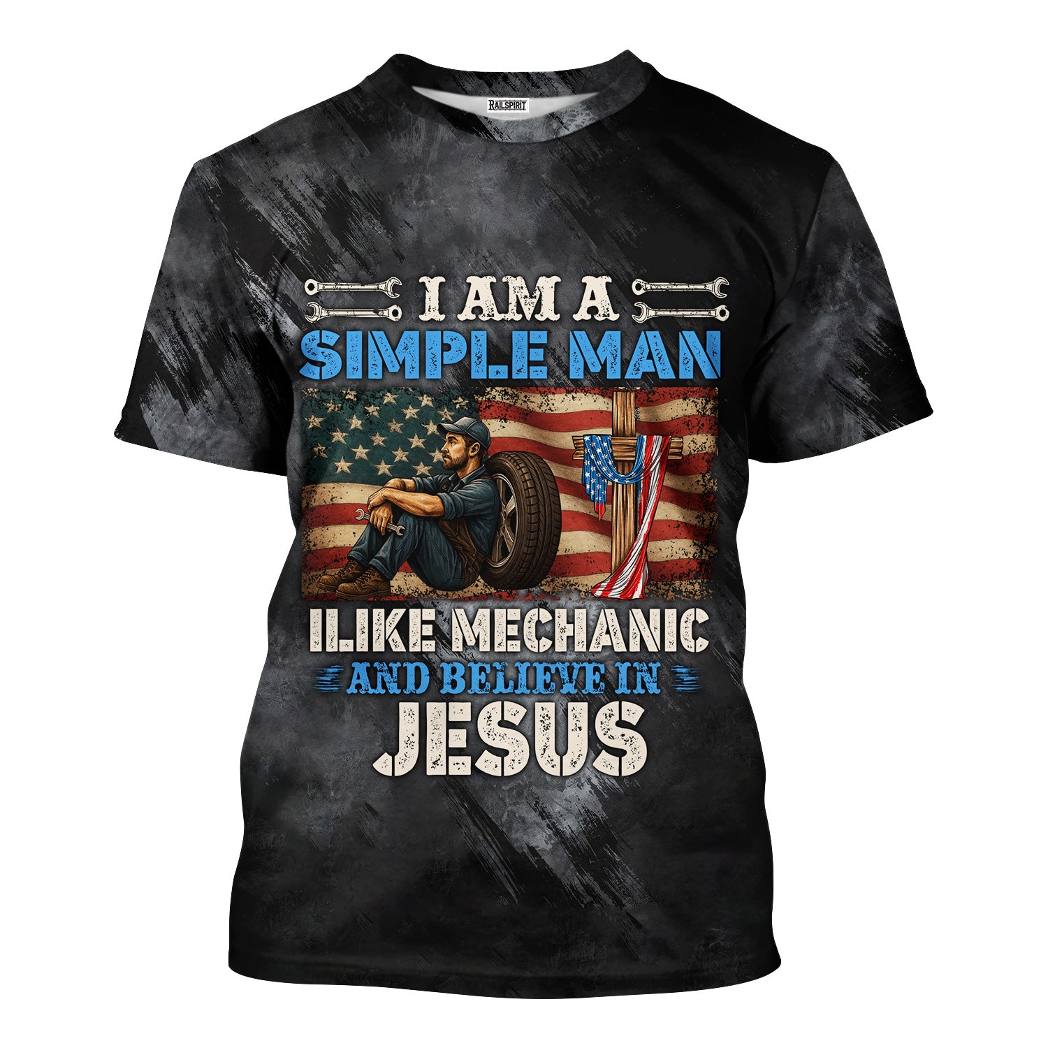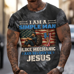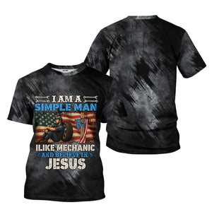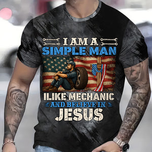 I Am a Simple Man Mechanic and Jesus T-Shirt, Christian Faith Tee for Men, Funny Auto Repair Workwear Shirt Gift for Mechanics