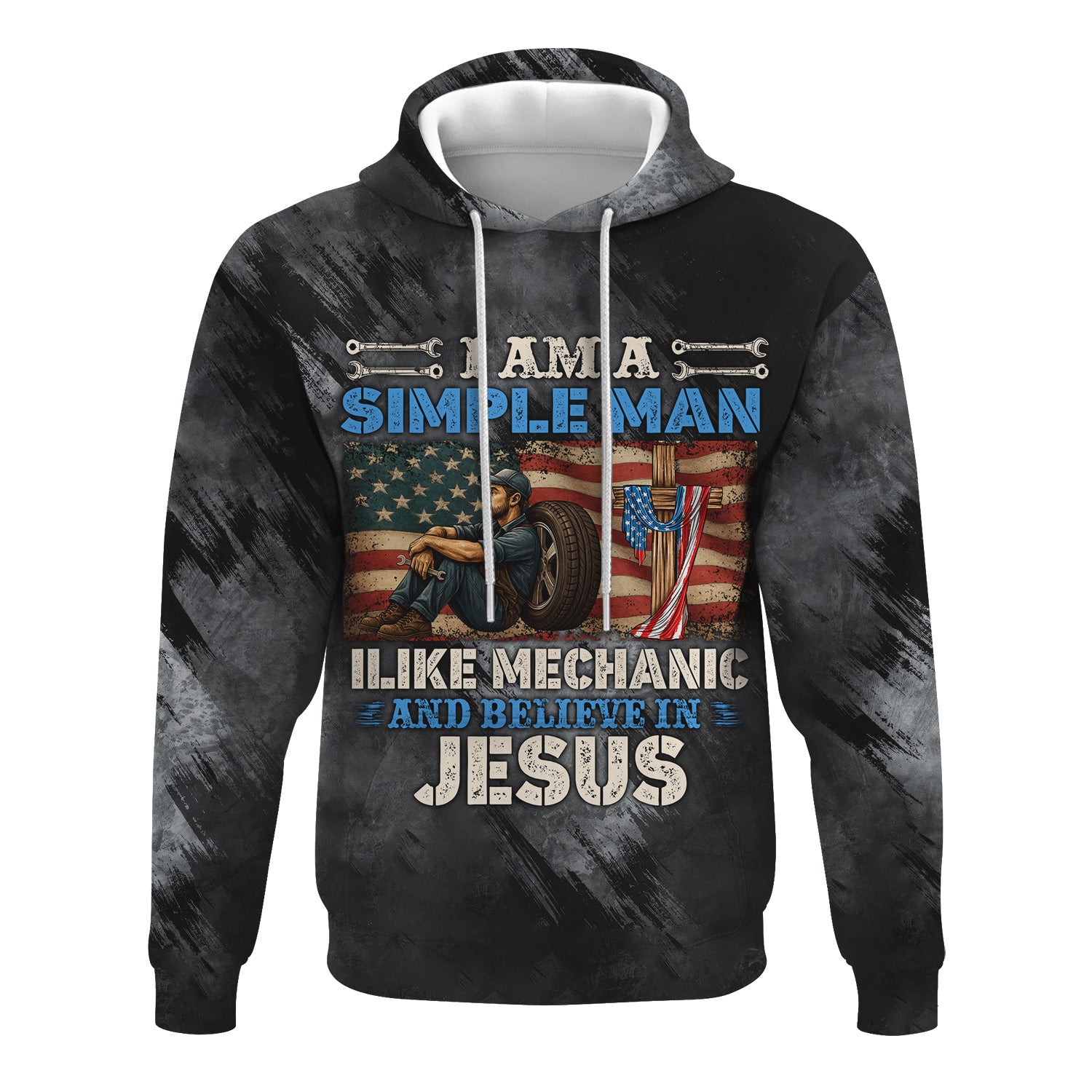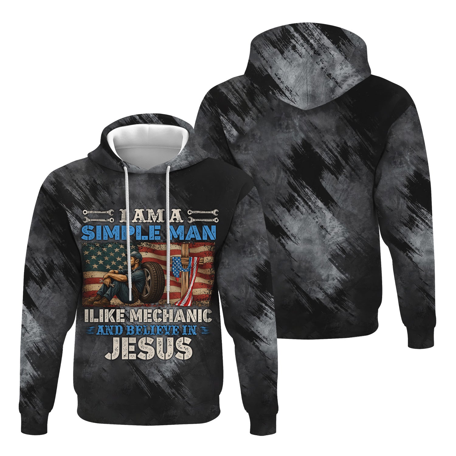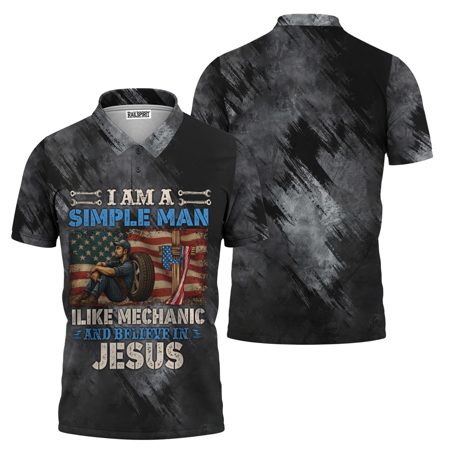 I Am a Simple Man Mechanic and Jesus T-Shirt, Christian Faith Tee for Men, Funny Auto Repair Workwear Shirt Gift for Mechanics