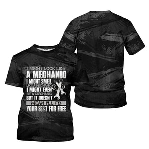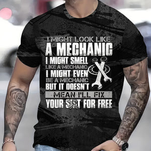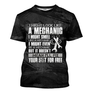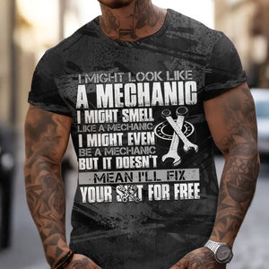 I Might Look Like A Mechanic But I Doesn't Mean I'll Fix For Free Shirt Funny Printed Vintage Mechanic Unisex T Shirt
