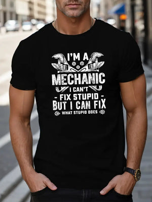 I'm A Mechanic Shirts for Men, I Can't Fix Stupid But I Can Fix What Stupid Does Black Shirt Gifts