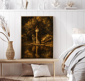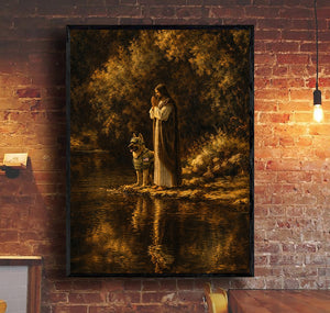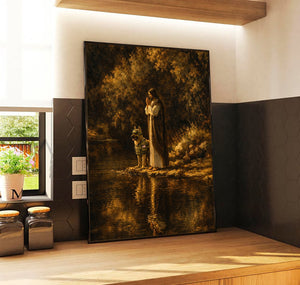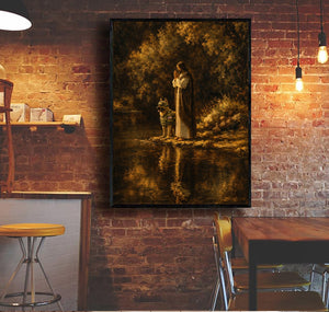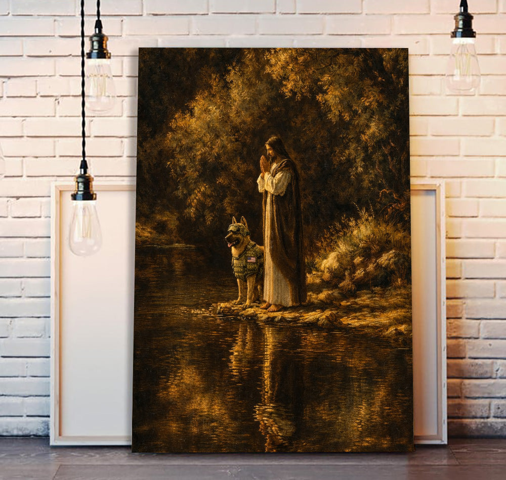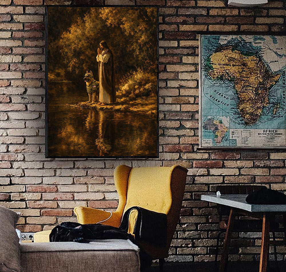 Jesus and Military Dog Prayer Printed Canvas Wall Art Christian Faith Poster Religious Veteran Memorial Gift for Dad Father’s Day Home Decor