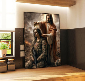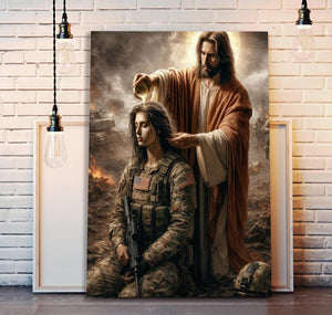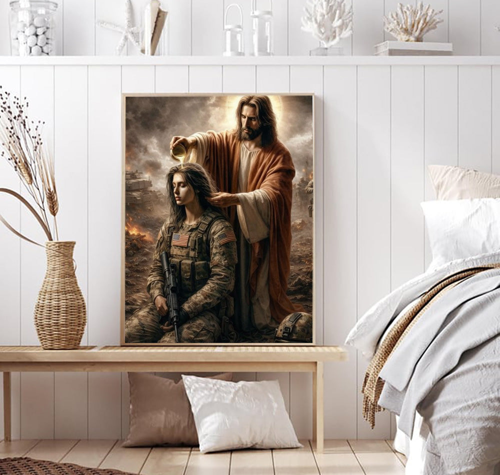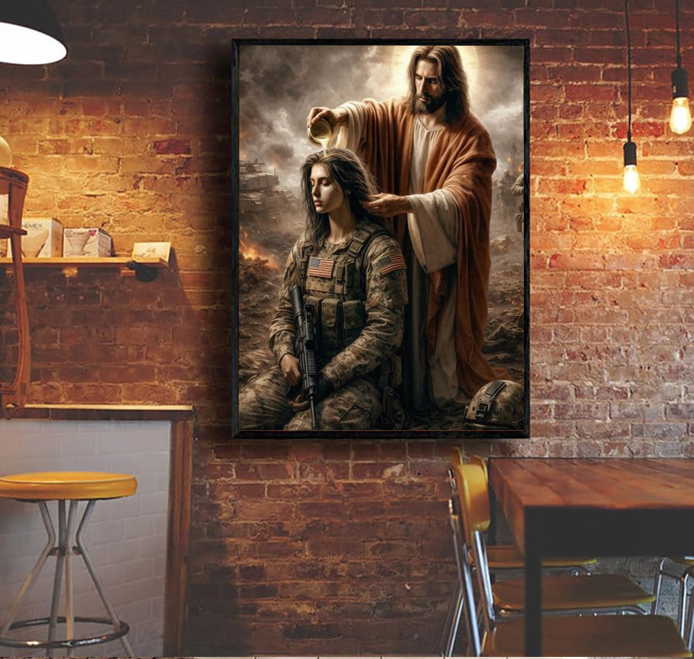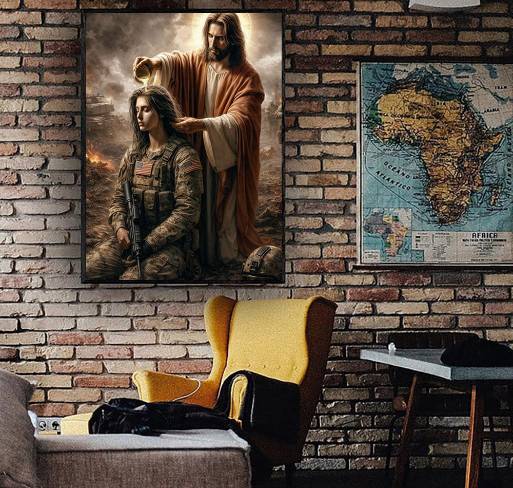 Jesus Anointing Soldier Canvas Wall Art, Christian Military Wall Art, Faith Based Patriotic Decor, Gift for Veteran, Religious Canvas Poster