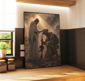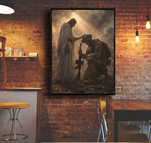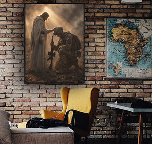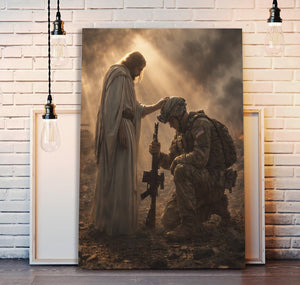 Jesus Blessing Soldier Wall Art Canvas, Christian Military Canvas Print, Faith & Veteran Decor, Gift for Veterans, Patriotic Home Decor
