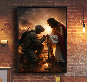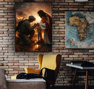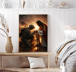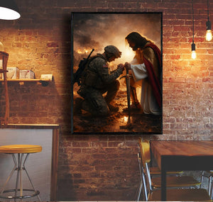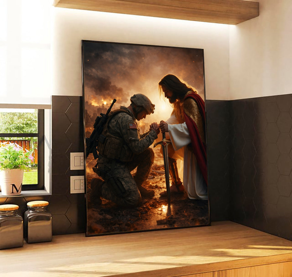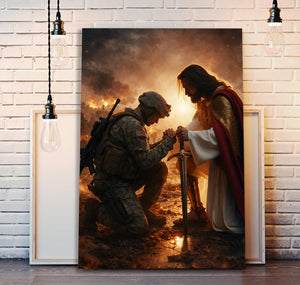 Jesus Christ Blessing Soldier Wall Art, Christian Religious Canvas Print, Faith and Prayer Artwork, Military Home Decor