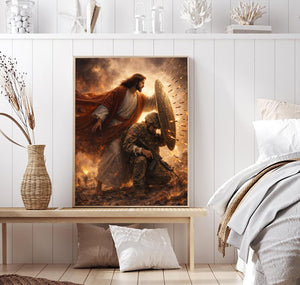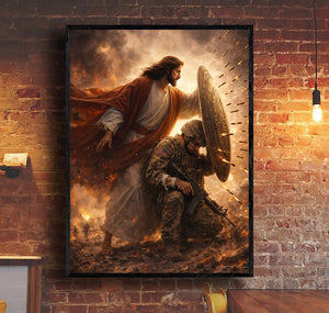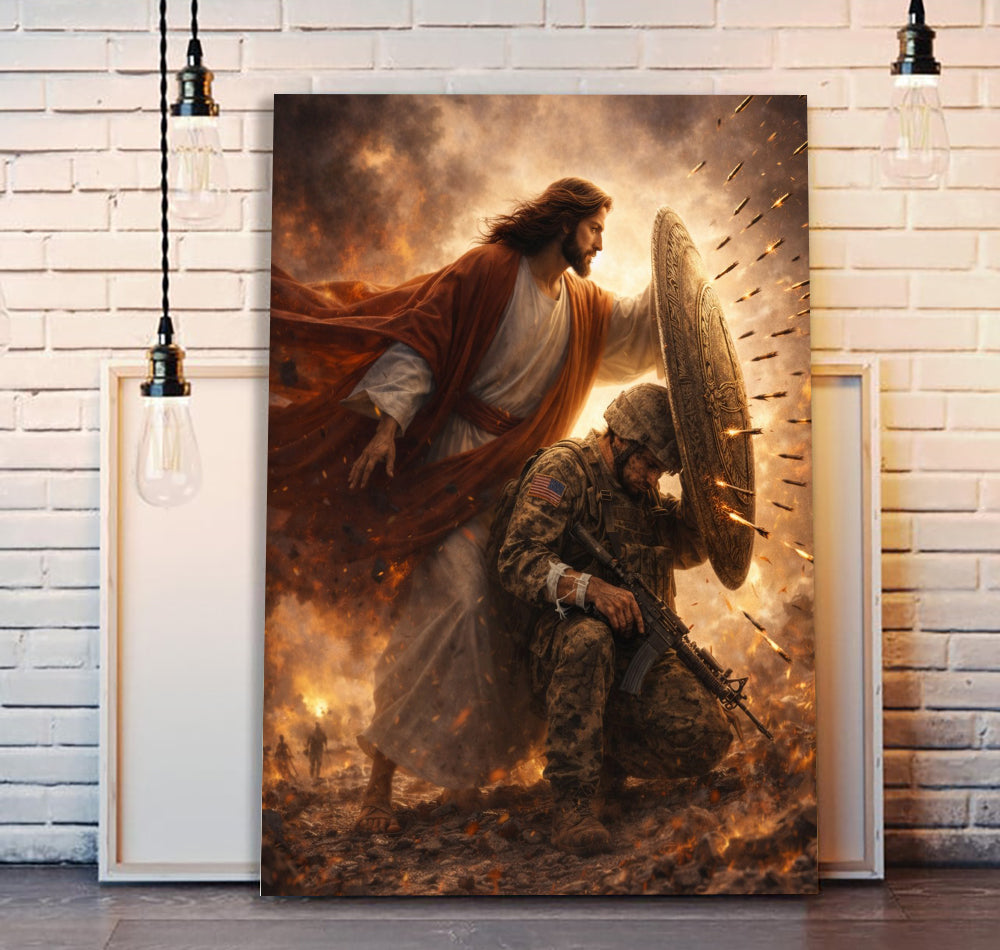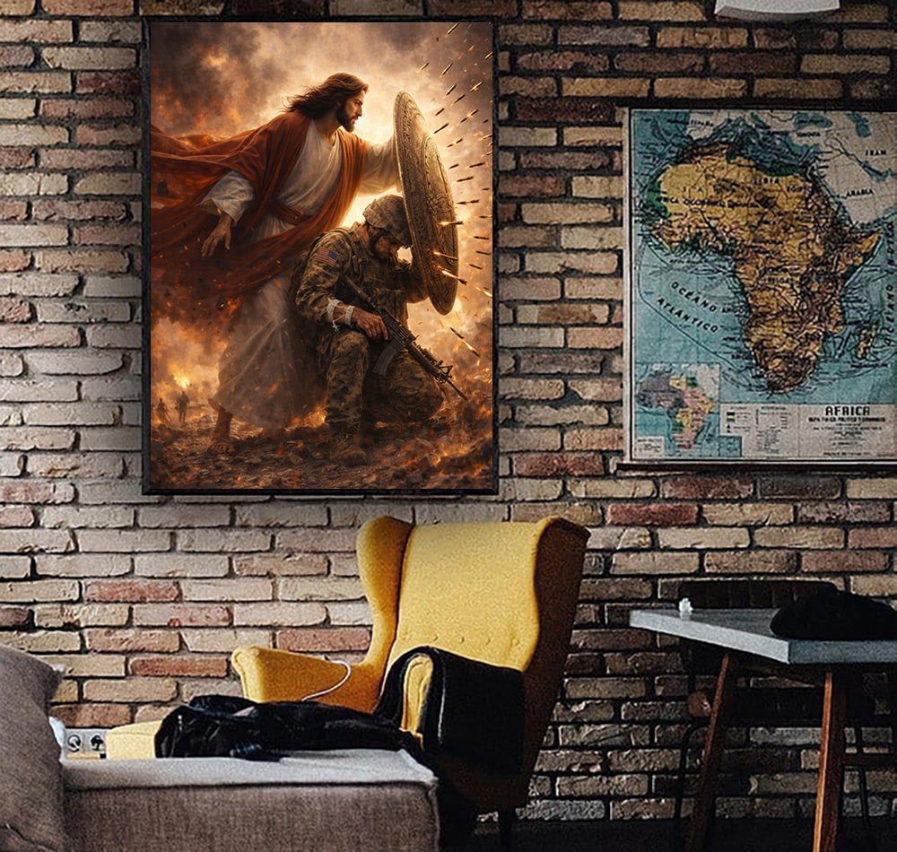Jesus Protect Soldiers Canvas A Soldier Is Never Alone In Battlefield Canvas Wall Art, Christian Military Wall Art for Veterans, Faith Home Decor Gift