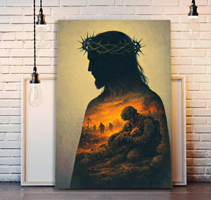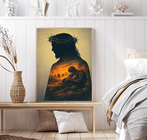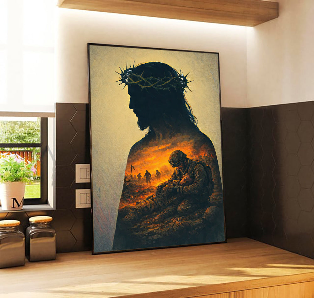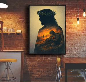 Jesus Silhouette Wall Art With Crown of Thorns Soldier Sacrifice Christian Faith Canvas Print Religious Home Decor