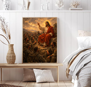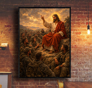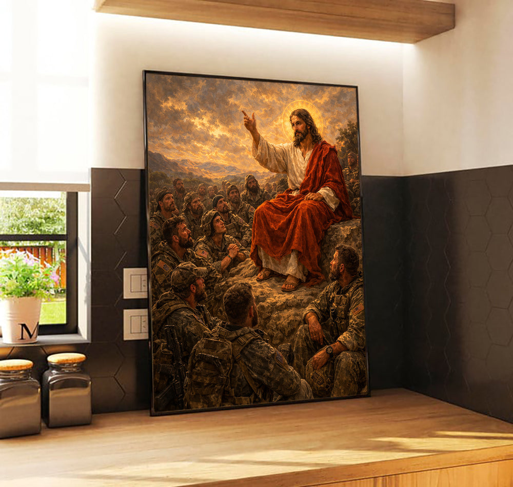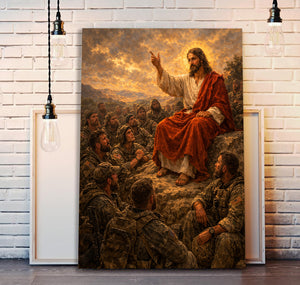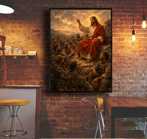 Jesus Teaching Soldiers Christian Faith Printed Canvas Wall Art Military Prayer Poster Religious Gift for Dad Father’s Day Christian Veteran Decor